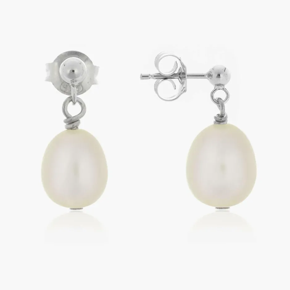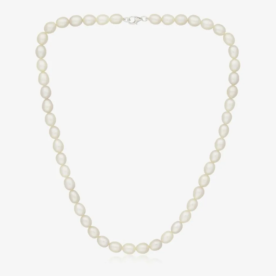 Elegant necklace, bracelet and earrings set for girls by Raw Pearls, made with ivory cultured freshwater river pearls. All three pieces have sterling silver clasps and backings. A wonderful gift, the set is presented in a beautiful box and velvet pouch.