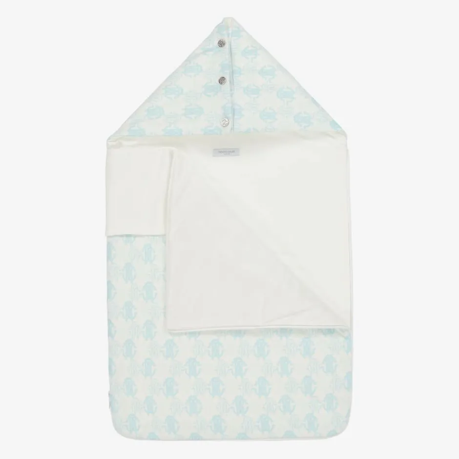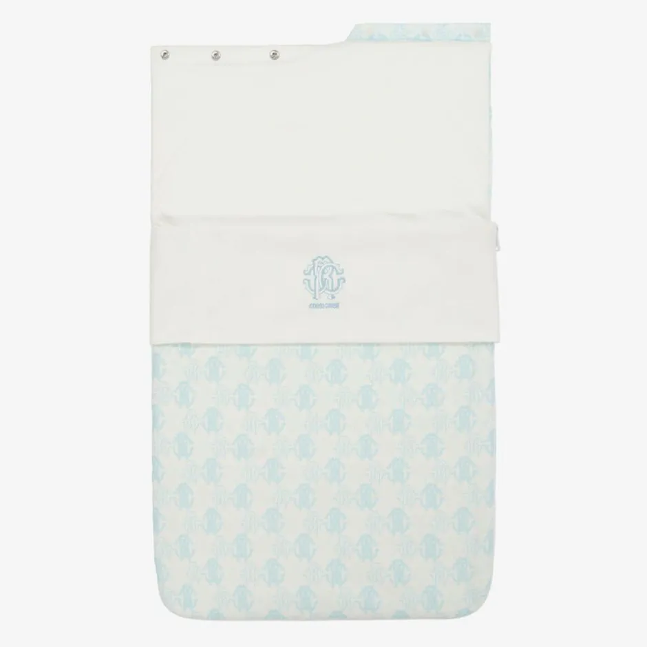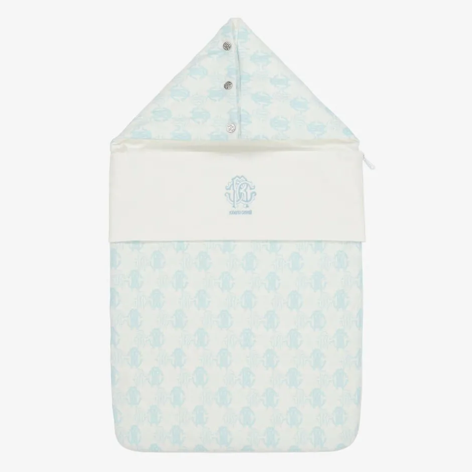 Roberto Cavalli Ivory & Blue Cotton Monogram Baby Nest (73cm) New