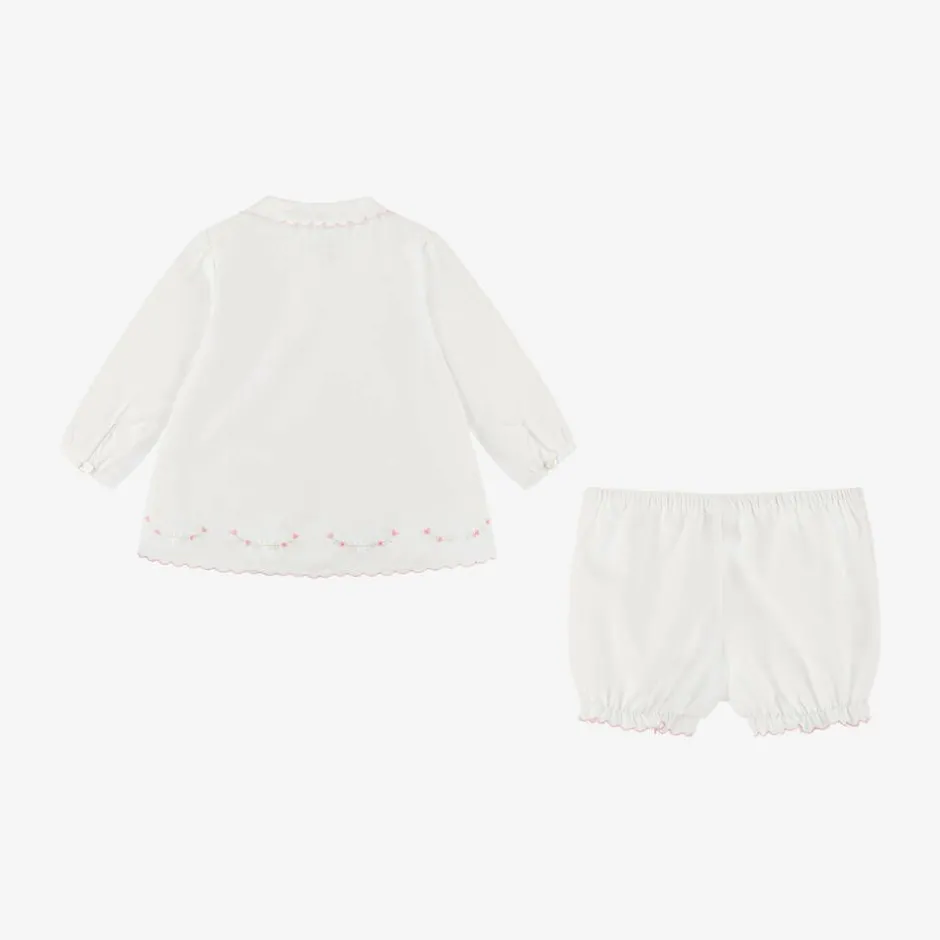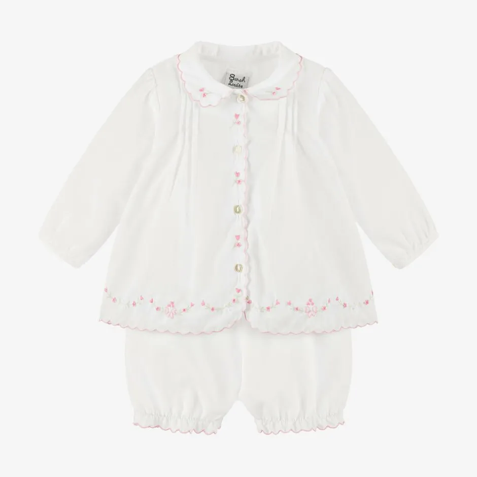 Sarah Louise White Cotton Baby Shorts Set Clearance