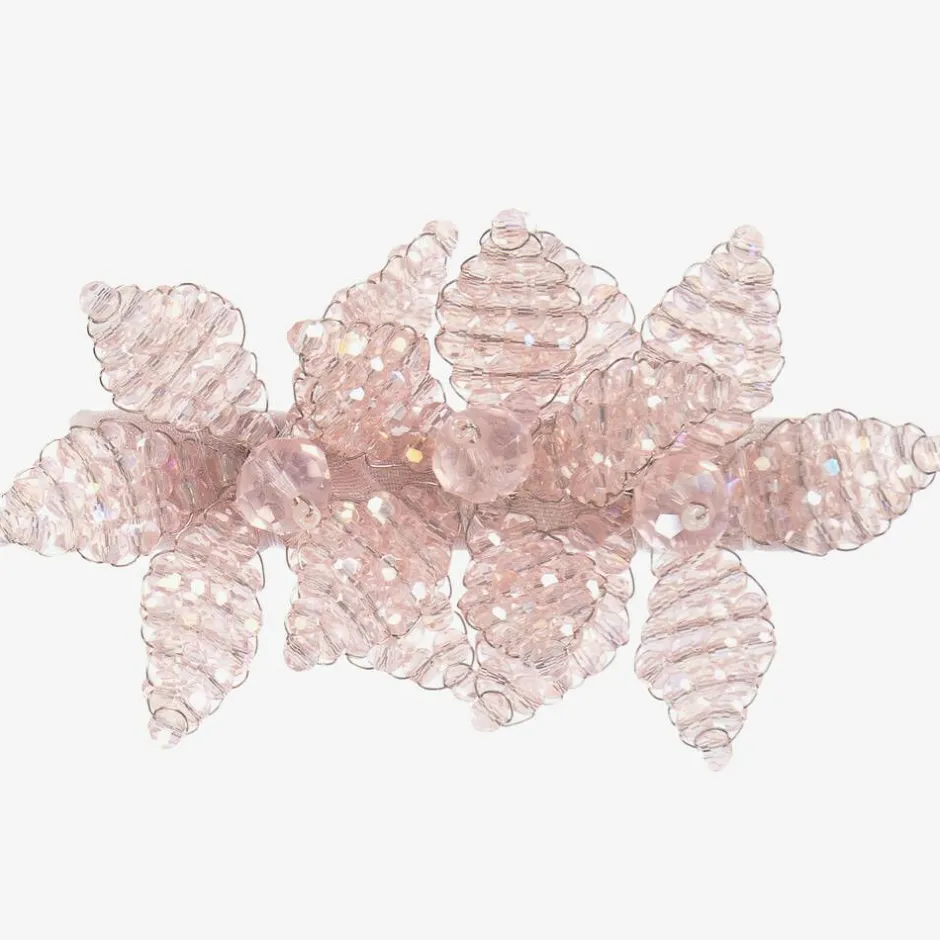 A gorgeous pink hair clip for girls by Sienna likes to party. Tiny crystal beads have been handcrafted to create three sparkly flowers, attached to a satin-covered alligator clip.