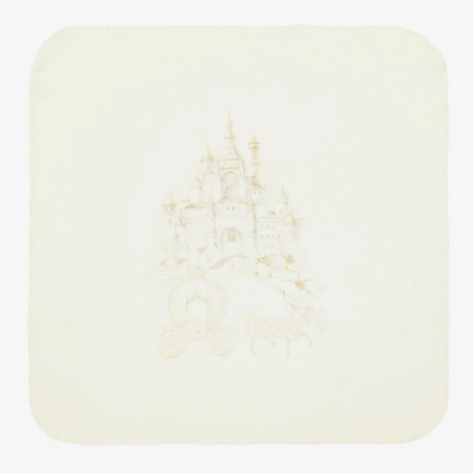Exclusive to Childrensalon, a pack of two ivory muslin cloths for baby girls by Sofija, made in soft, lightweight cotton. One is plain ivory and the other has a gorgeous fairytale castle and carriage design on the front. These useful, absorbent cloths are great for cleaning up little spills or can be used as a burping cloth or nursing cover.