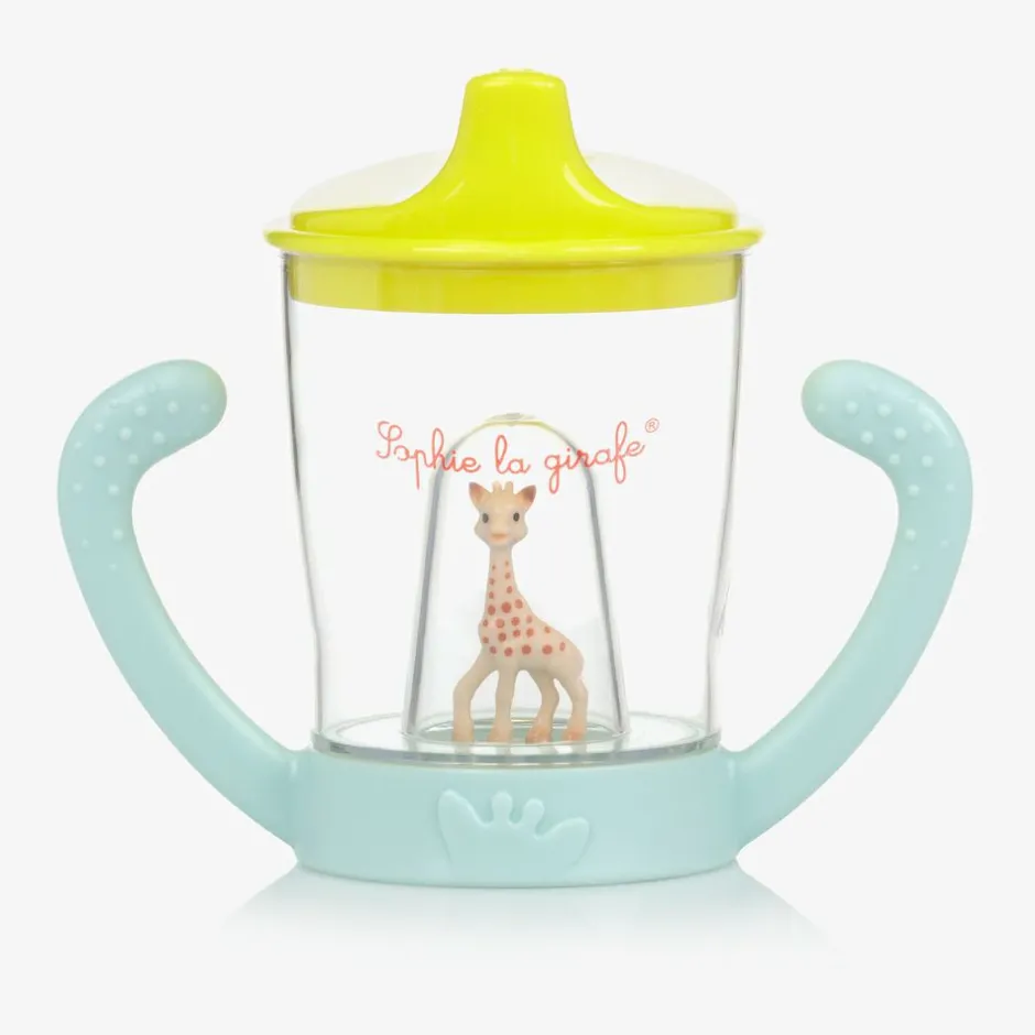 Sophie la Girafe non-spill cup for baby boys and girls. Practical and fun, the cup features an ergonomic spout that favours a natural sucking action, encouraging babies to transition from bottle feeding. The two textured handles make the cup easy for little hands to grasp.