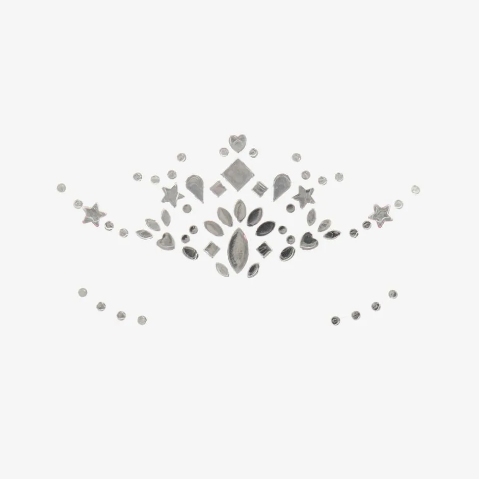 Bright pink and purple gem makeup face stickers for girls by Souza. An ideal finishing touch when dressing up as a princess or fairy, the elaborate designs peel off intact making it easier to apply them to the face. Once the party is finished and it is time to return to normal, these jewel stickers can be re-stuck to the sheet and re-used at subsequent occasions until the sticky wears off.