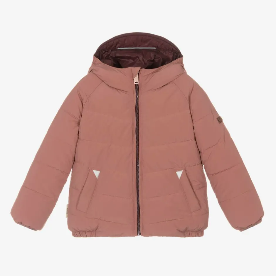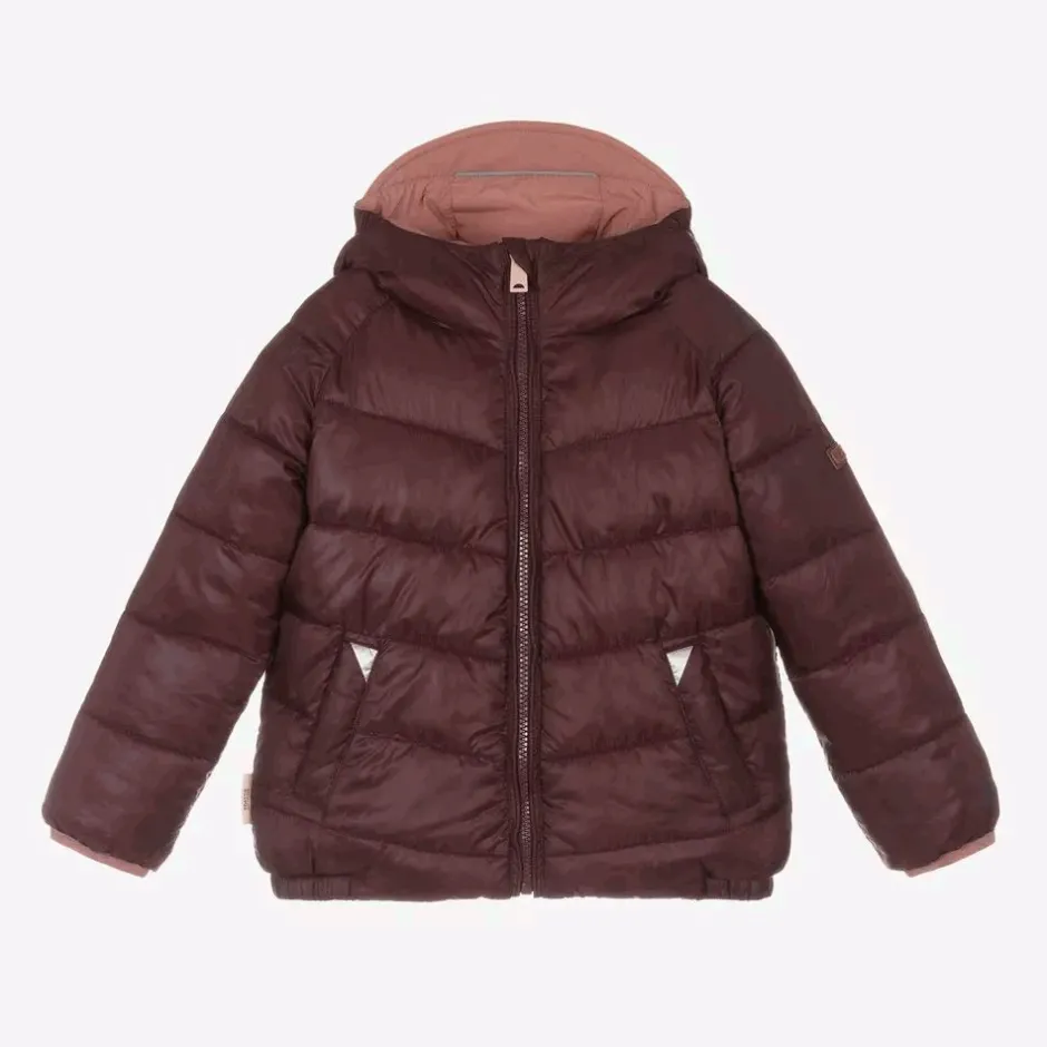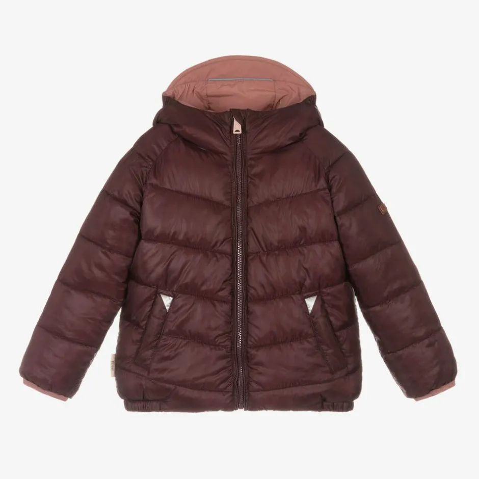 A reversible, hooded puffer jacket for boys and girls by British brand Töastie, matt dusky pink on one side and silky burgundy red on the other. This water-repellent outerwear piece is lightweight yet provides superior warmth with mid-weight insulation. The hood has a short peak and is gently elasticated on the sides for added protection from the weather. Both sides feature fleece-lined pockets with popper fastenings, reflective detailing for improved visibility, logo tabs on one sleeve and branded elasticated cuffs.