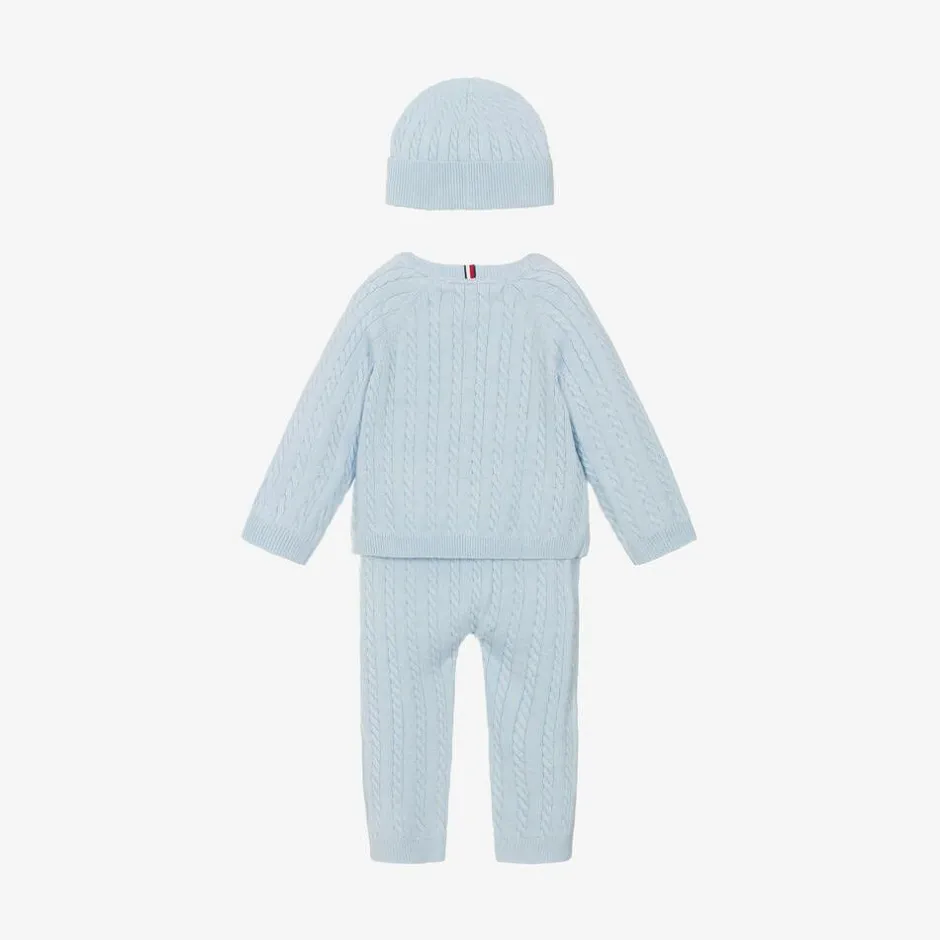 Tommy Hilfiger Blue Cotton & Wool Knit Baby Trouser Set New