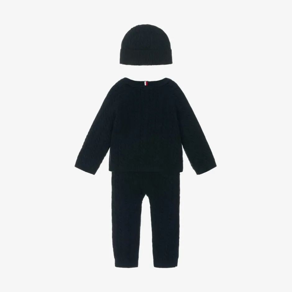 Tommy Hilfiger Blue Cotton & Wool Knit Baby Trouser Set Outlet