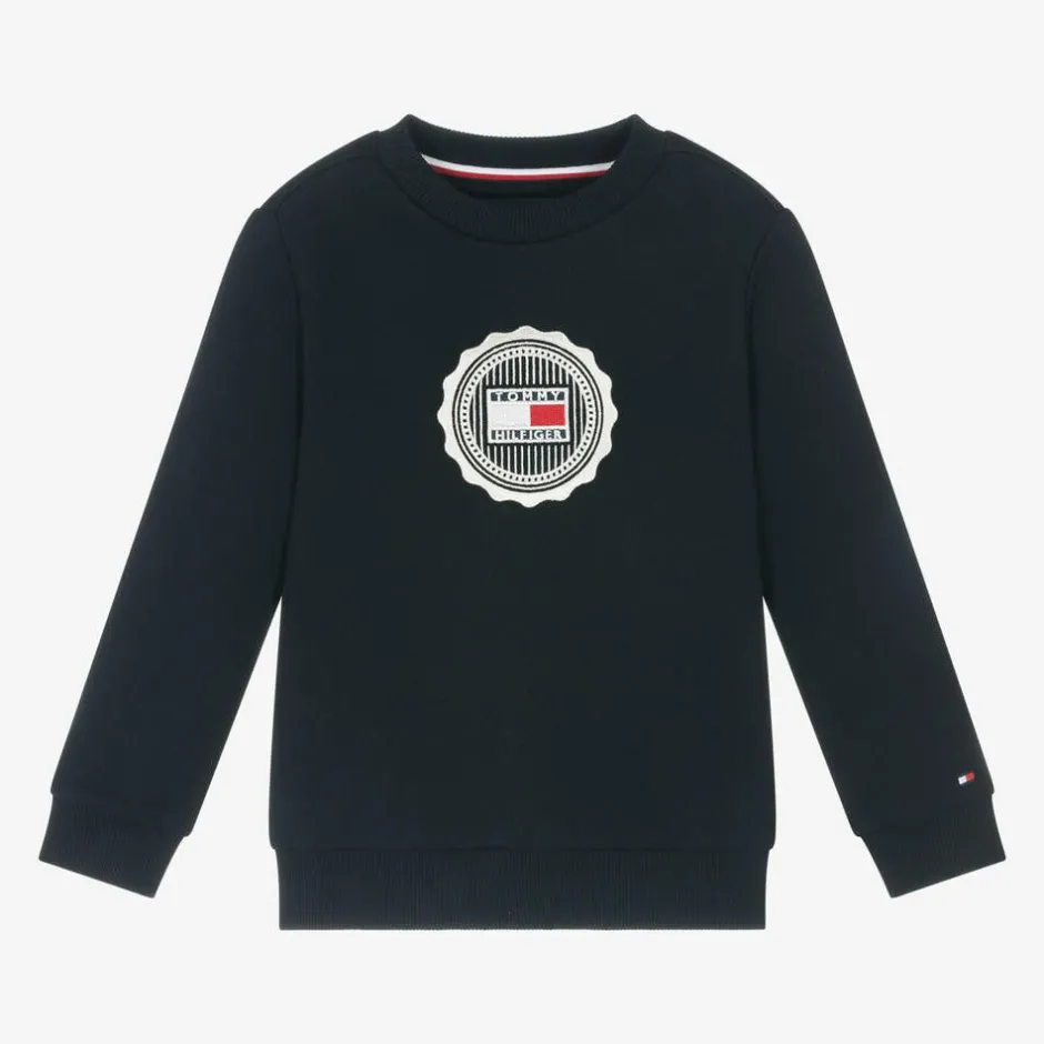 Tommy Hilfiger Boys Blue Cotton Stamp Logo Sweatshirt Discount