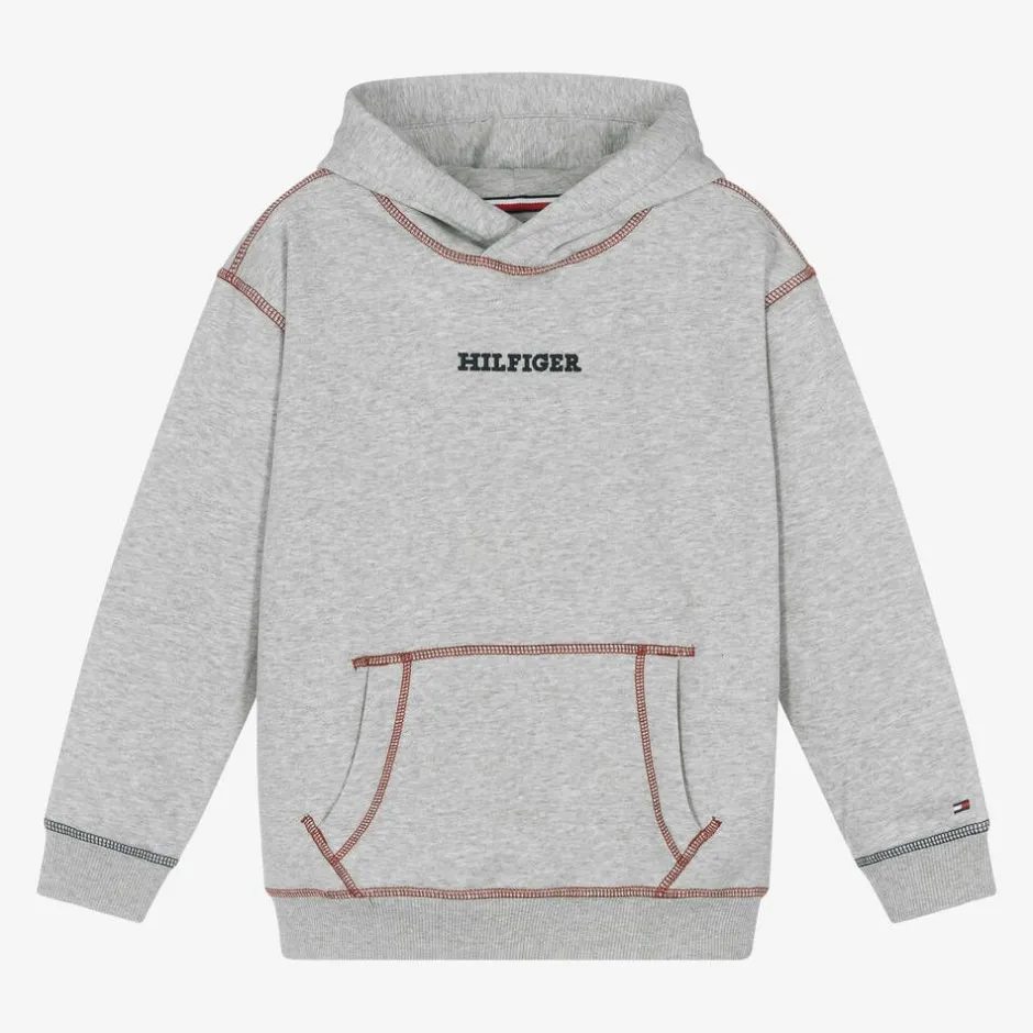 Tommy Hilfiger Boys Grey Cotton Contrast Stitch Hoodie Hot