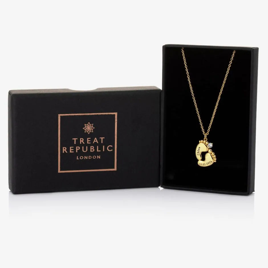 Treat Republic Personalised 18ct Gold Plated Baby Feet Necklace (45cm) New