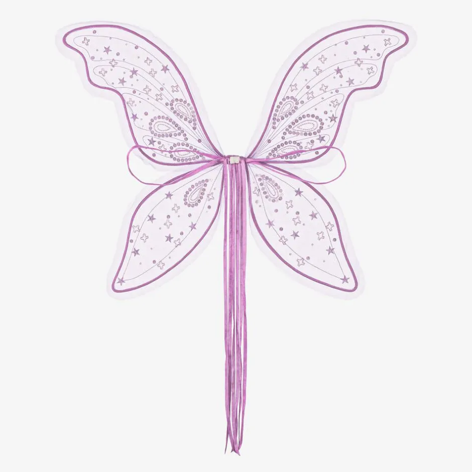 Beautiful lilac purple fairy wings for girls by Tutu du Monde, handmade in the finest tulle. These whimsical wings are embellished with sparkling sequins and beads. Satin ribbons drape beautifully from the centre for a lovely effect. The elasticated straps ensure this fabulous accessory sits comfortably on her shoulders. Items are made to last and become more lovely with wear as slight fading and fraying edges adds to their charm.