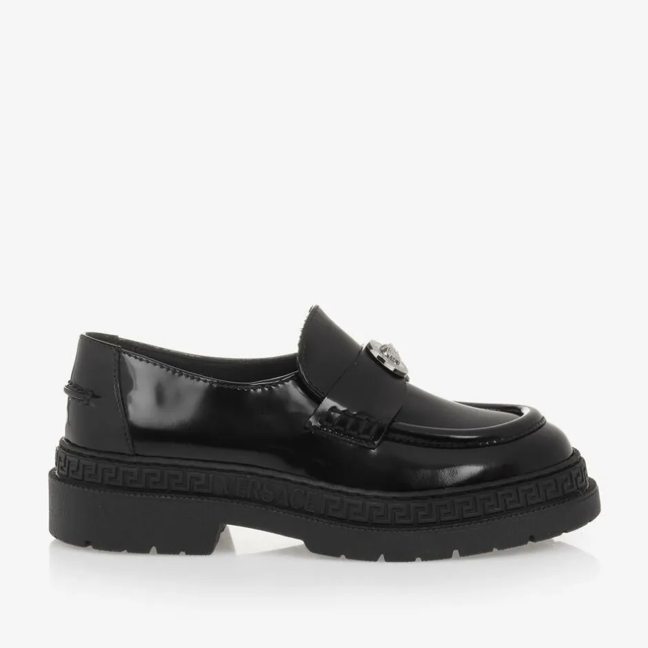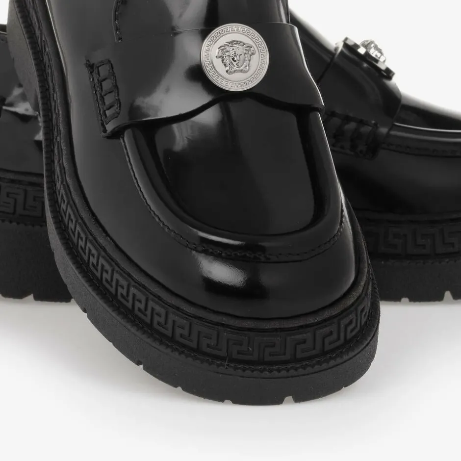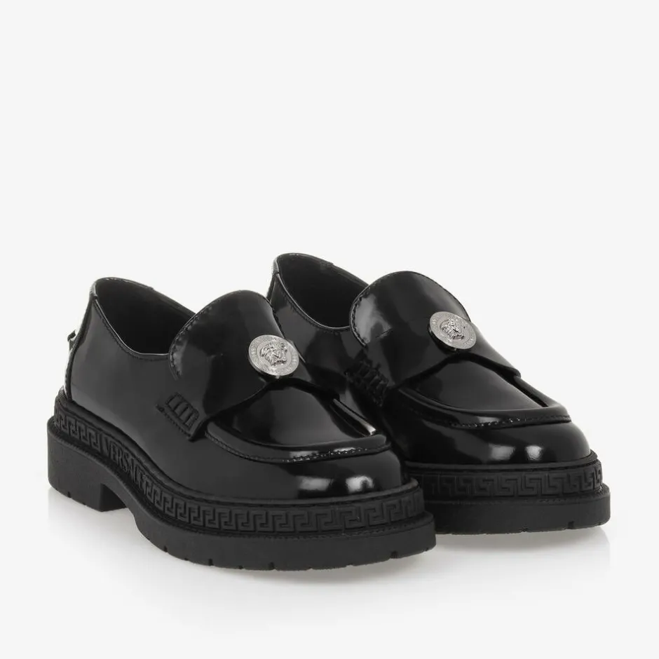 Versace Girls Black Patent Leather Medusa Loafers Clearance