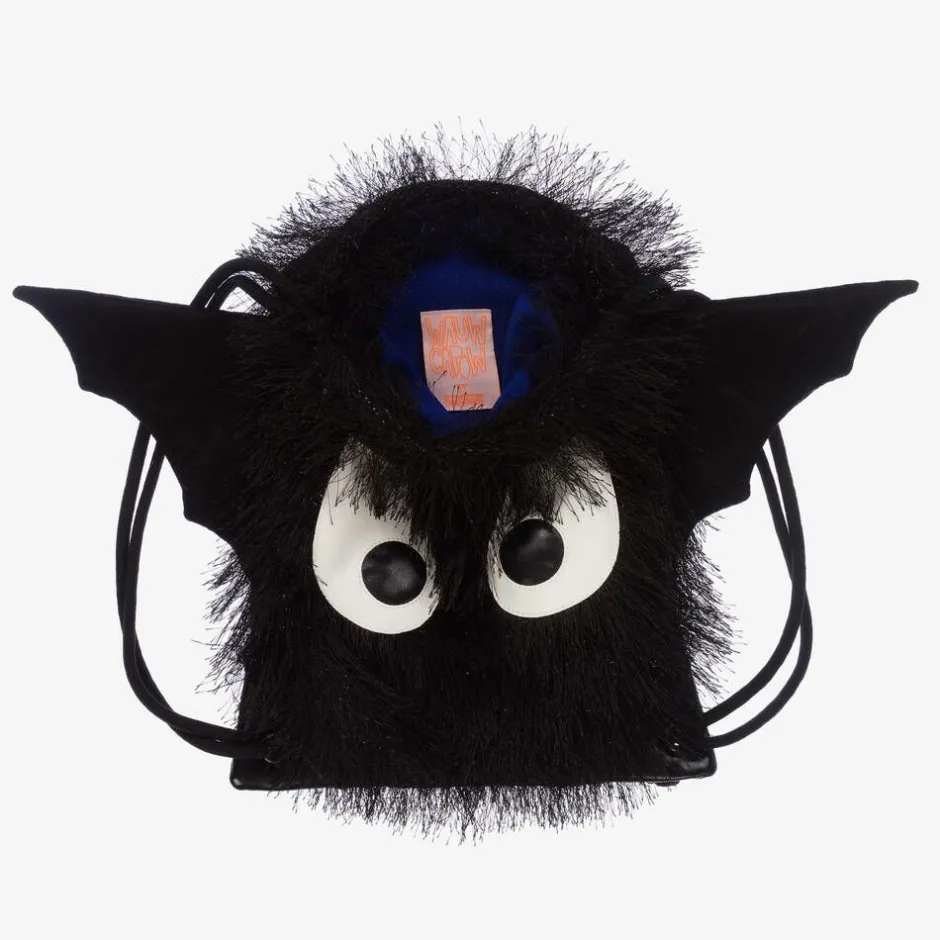 Wauw Capow Black Fluffy Bat Drawstring Bag (29cm) Clearance