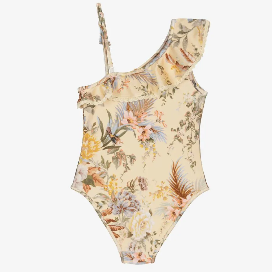 Zimmermann Girls Beige Floral Swimsuit CreamMultiFloral New