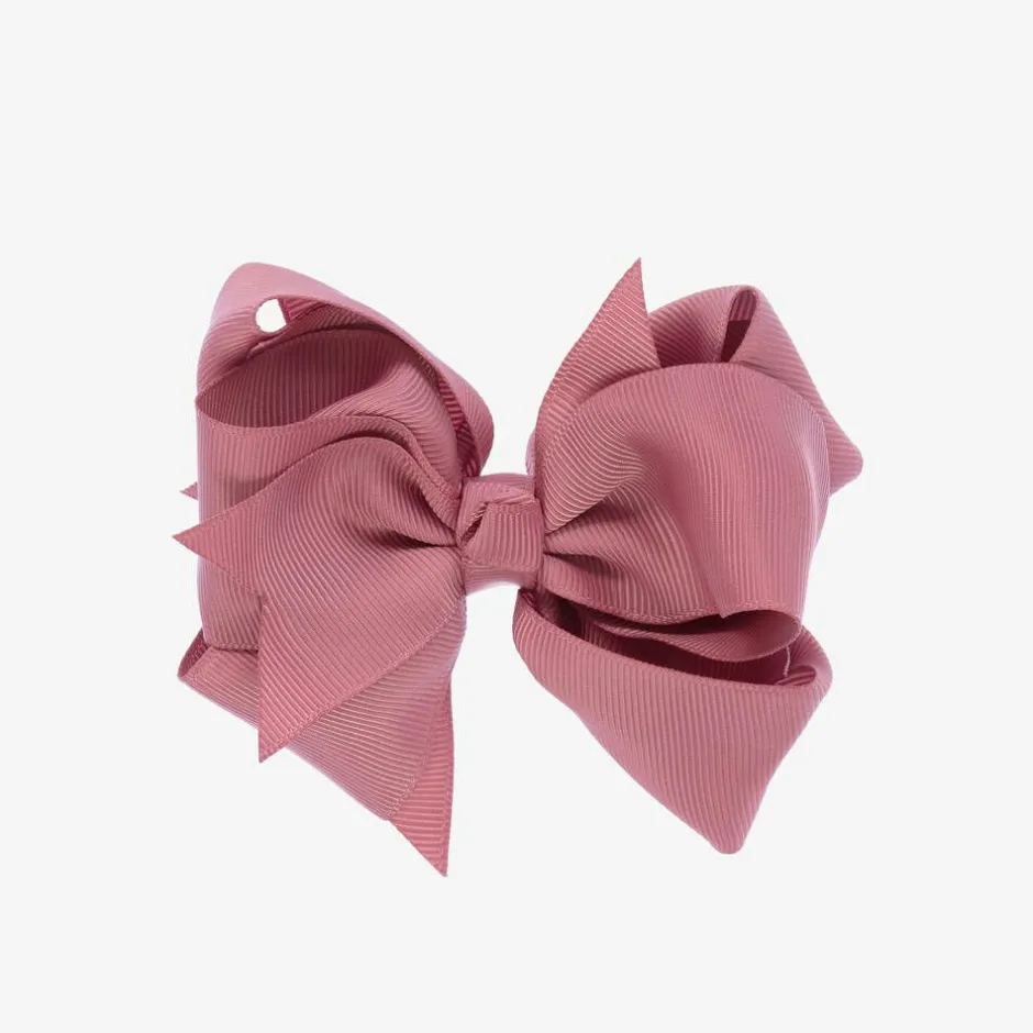 Dusky rose pink hair clip for girls by Abel & Lula, topped with a grosgrain bow, a wonderful finishing touch to any outfit. The clip is also covered in pink grosgrain and is lined in rubber to help it sit securely.
