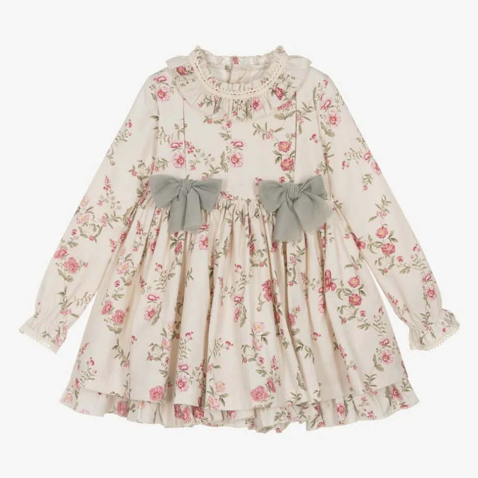 Abuela Tata Girls Beige Floral Print Cotton Dress Sale