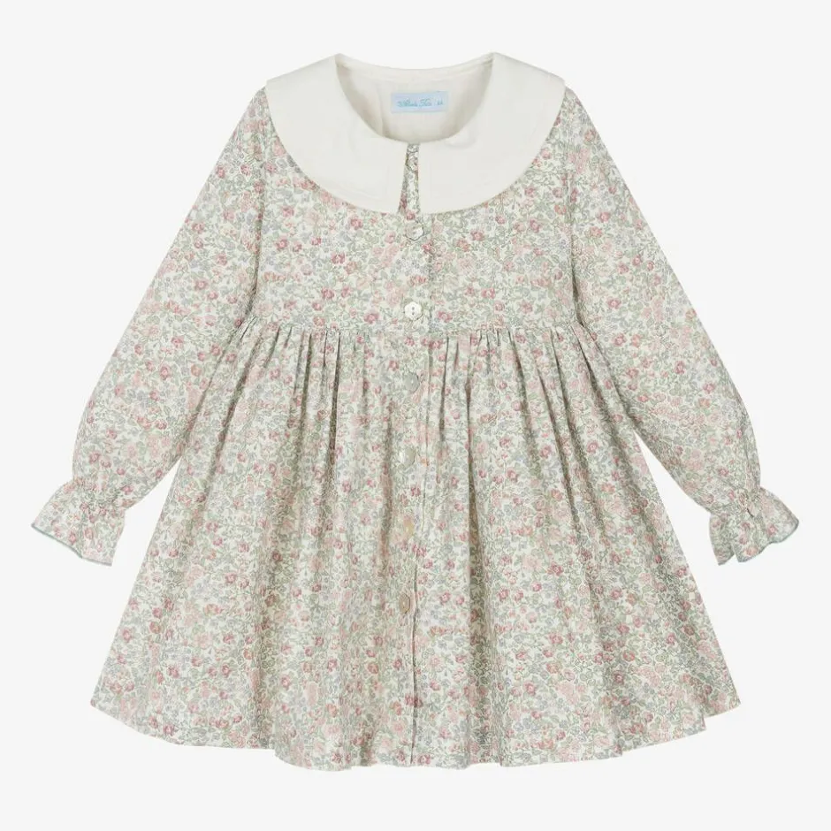 Abuela Tata Girls Ivory Floral Print Cotton Dress Hot