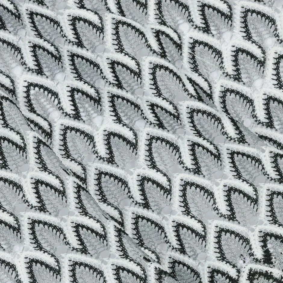 A lovely black and ivory short-sleeved dress for little girls by AIGNER. Made from lightweight crochet lace, it has a delightful scalloped leaf-inspired pattern in black, grey, and white shades. Fastening with a concealed zip on the back, it has a soft cotton lining and ivory jersey trims with black flower button embellishments. The patch stitched on the front features their signature 'A' horseshoe logo for a branded finish.