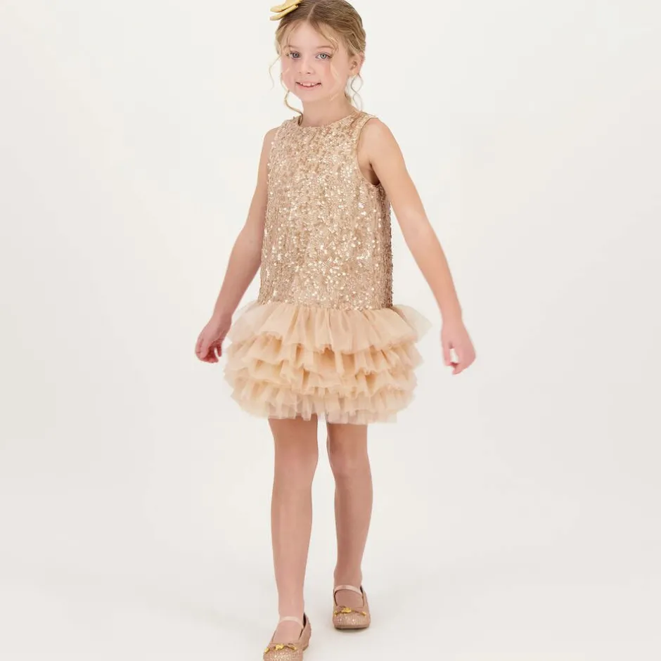Angels Face Girls Pink Sequin & Tulle Dress Caramel Clearance