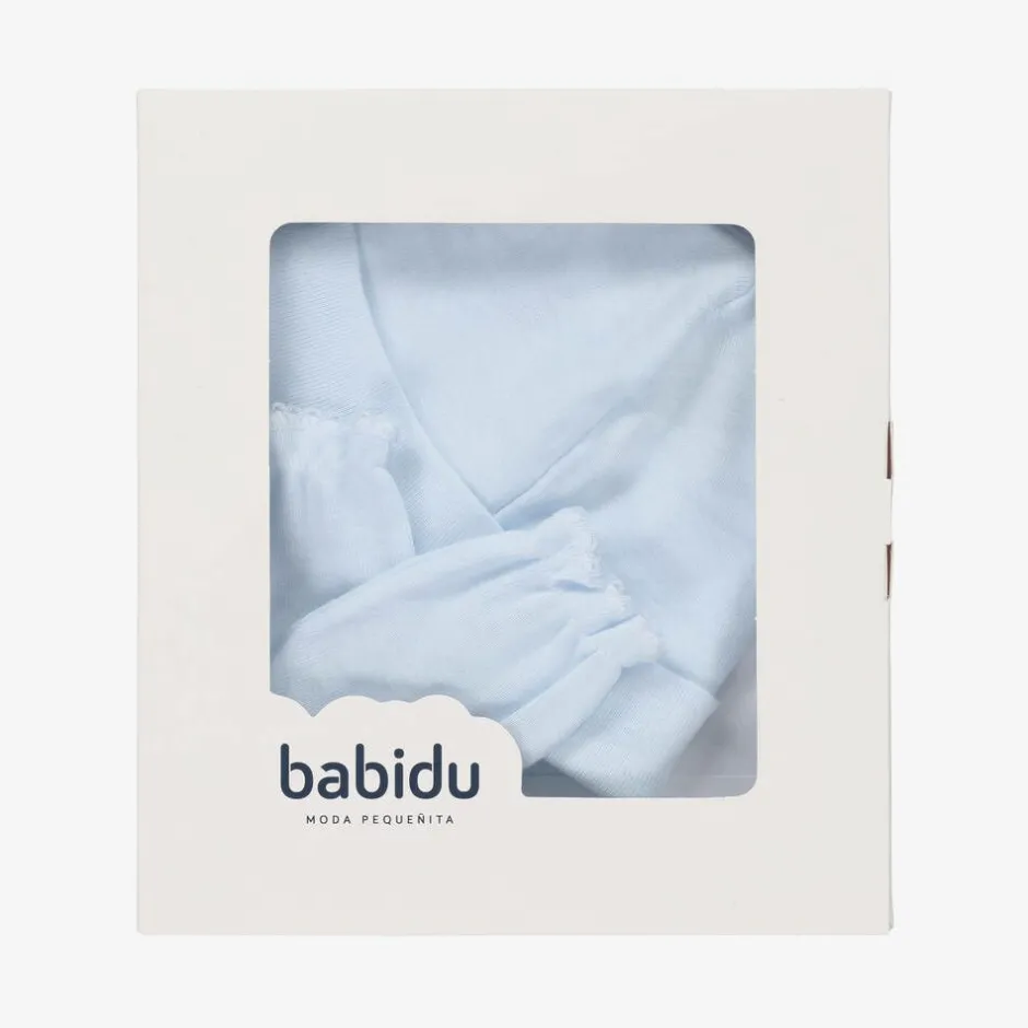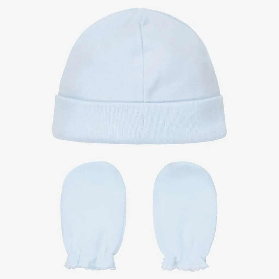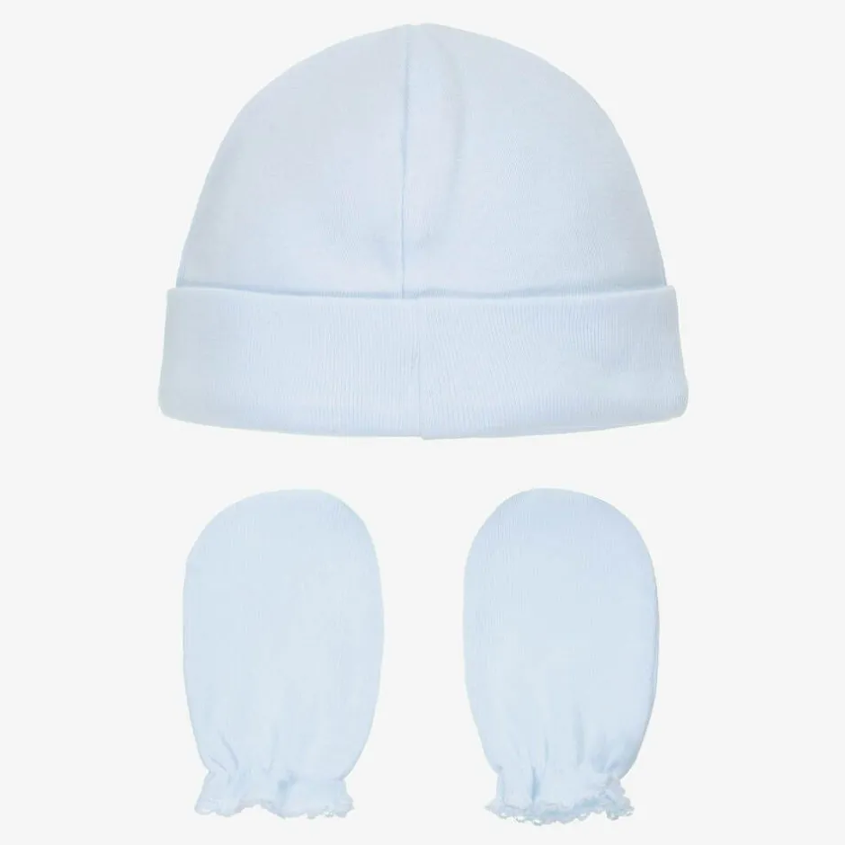Babidu Blue Cotton Hat & Mittens Set Sale