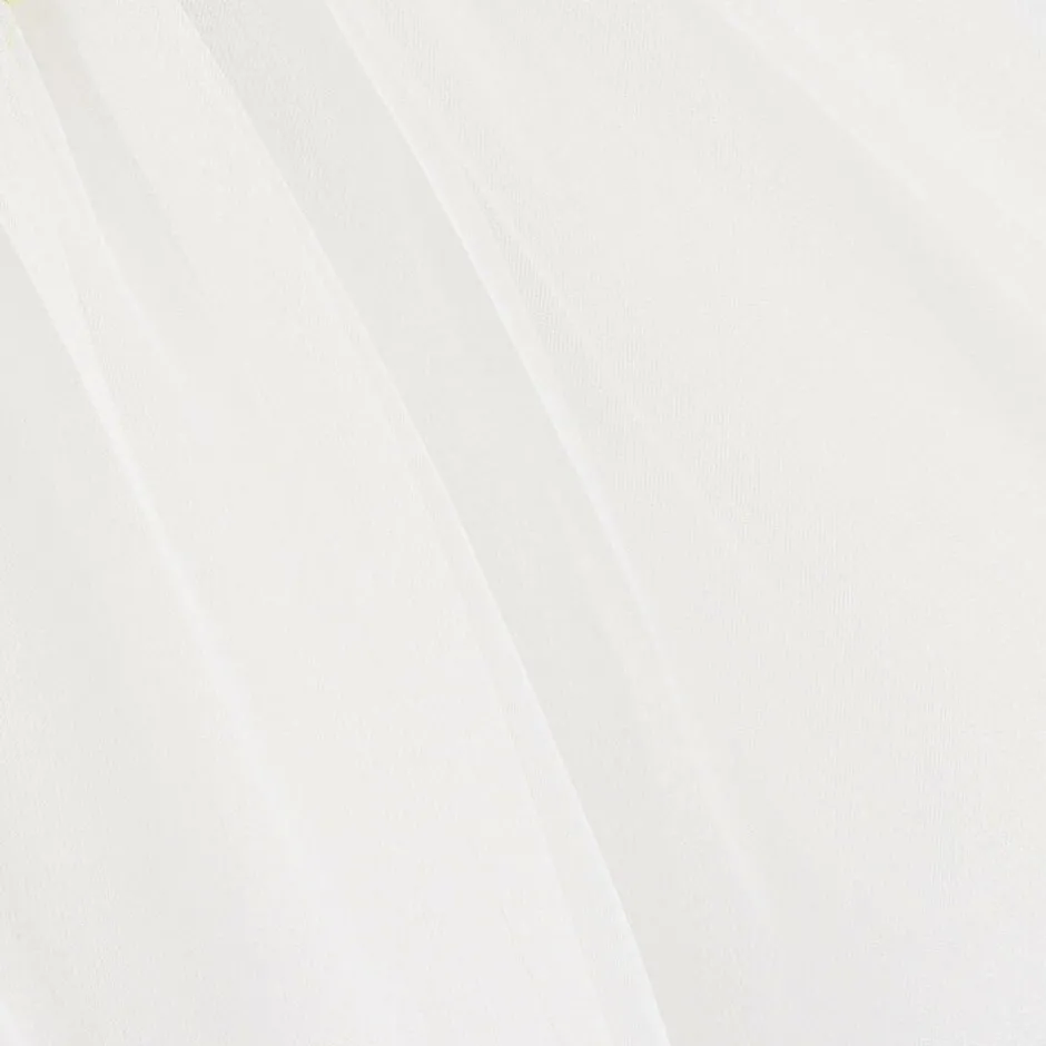Baby girls white dress and headband set from Beau KiD. The bodice is made in pretty soft mesh with pearl trim on the neck. The skirt has gathered layers of voluminous tulle and is decorated with fabric flowers, leaves and diamantés. There is a removable flower and tulle brooch on the back and a matching stretchy lace headband.