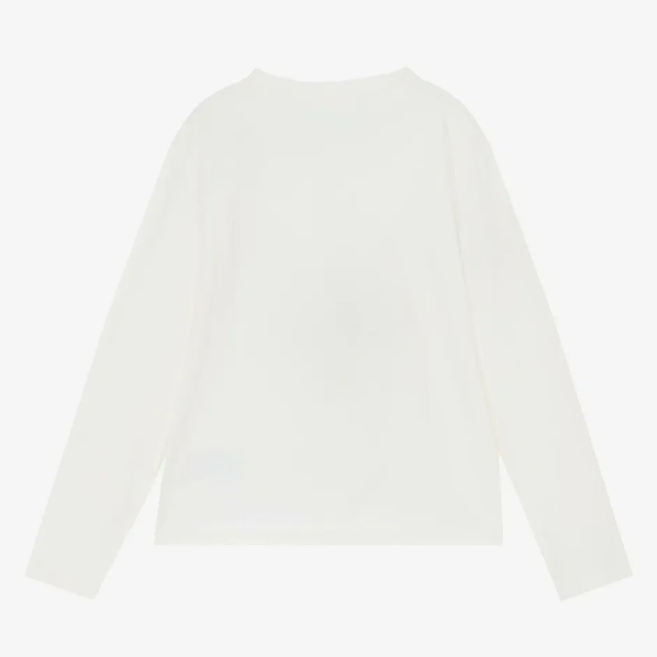 Designed by Billieblush for girls, an ivory long-sleeved top made in comfortable cotton jersey. Lightweight with a gently ribbed crew neckline, it has a colourful 'Just Love' sequin motif on the front for a stand-out look.