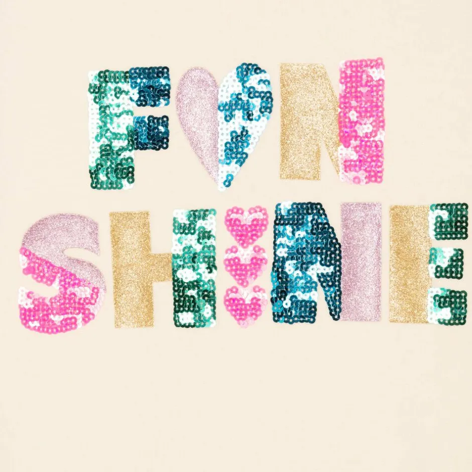 Great for a fun yet casual style, this ivory hooded long-sleeved dress for girls is by Billieblush. Made from soft mid-weight jersey with a cosy fleece interior, the hoodie-style top has 'Fun Shine' printed in colourful and glittery lettering on the chest with sequin embellishments for added sparkle. The neon pink topstitching adds an element of contrast and there is a branded tab on one side seam. Lined in lightweight viscose jersey, the attached sunray pleated skirt is striped in an array of muted tones and stitched with transparent sequins for a shimmery finish.