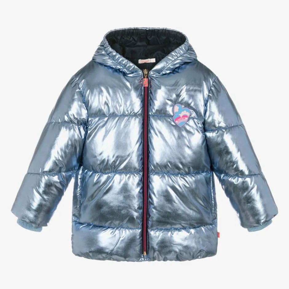 Billieblush Girls Metallic Blue Puffer Coat New
