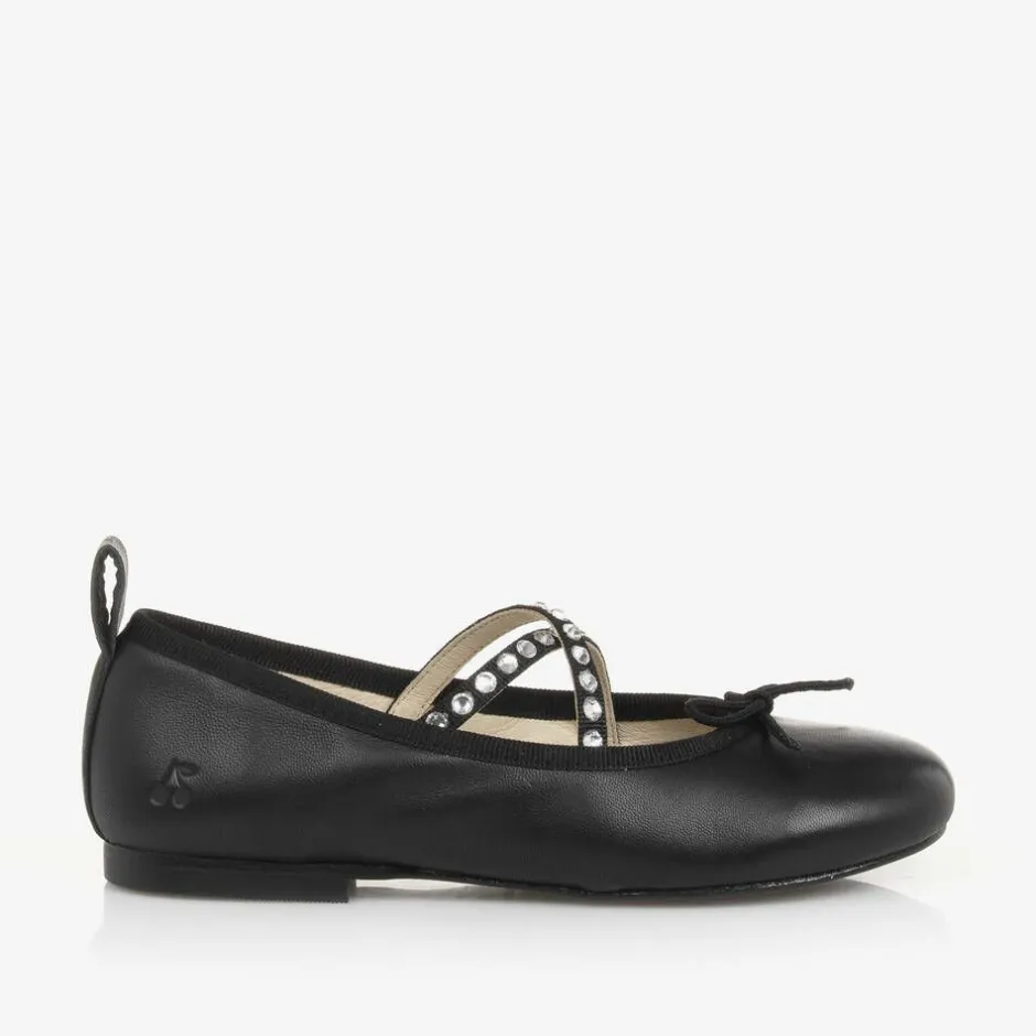 Bonpoint Girls Black Leather Ballerina Shoes Hot