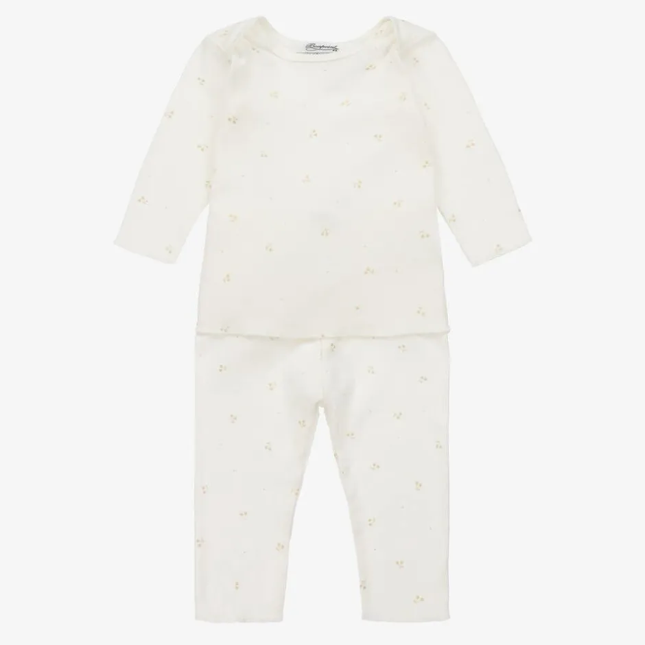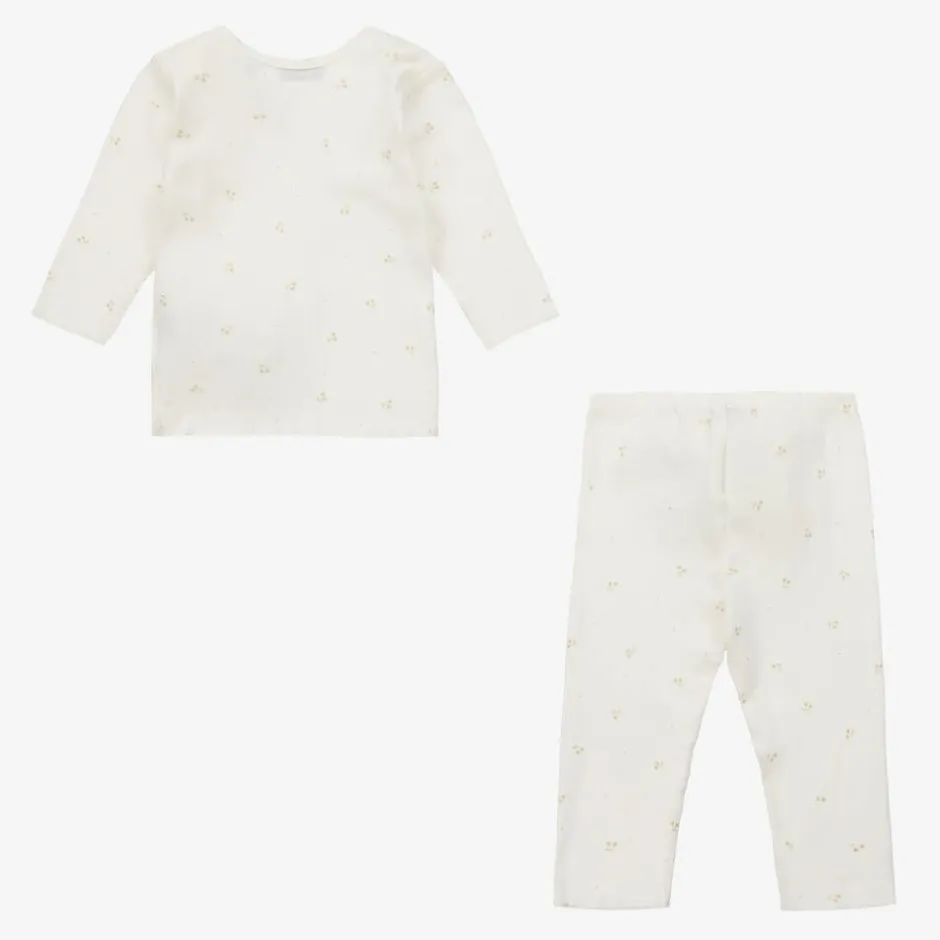 Bonpoint Girls Ivory & Gold Cotton Leggings Set Hot
