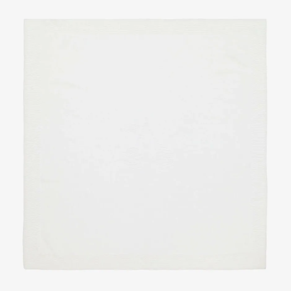 Gorgeous ivory blanket for baby boys and girls by French brand Bonpoint, knitted in luxuriously soft cashmere. It has a contrast garter stitch border and the brand's signature cherry motif is patterned at the centre.