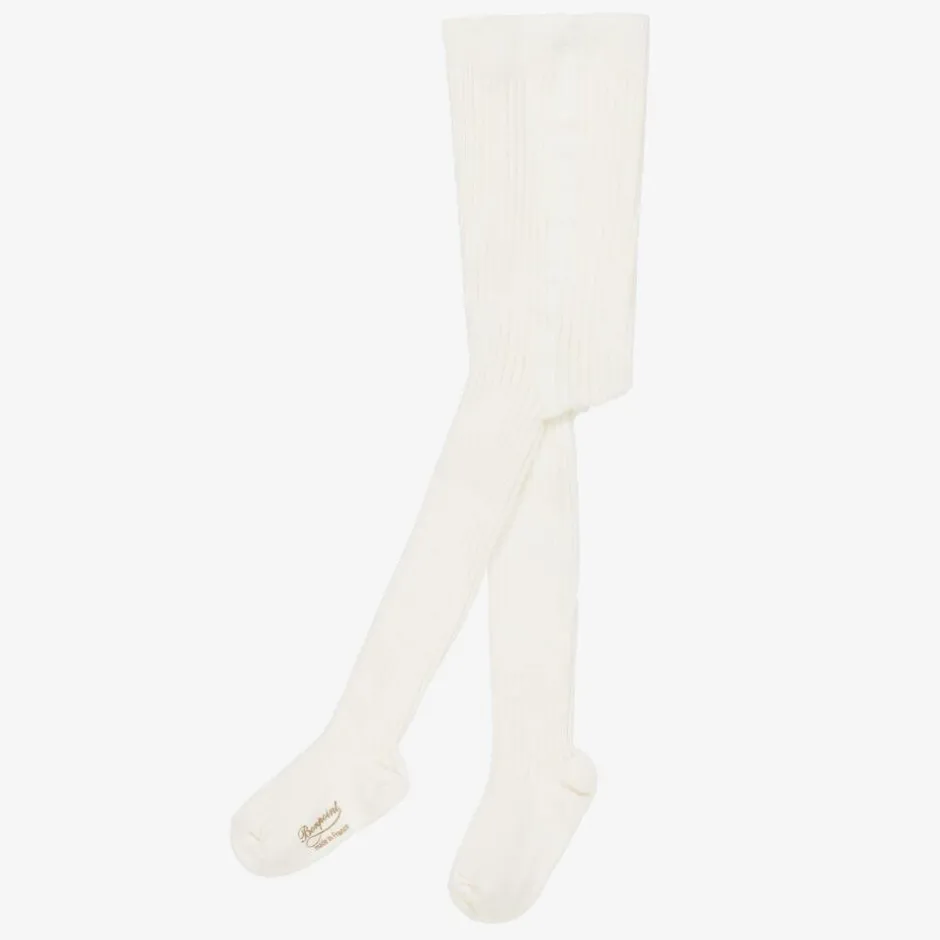 Ribbed knit tights for little girls from French luxury brand Bonpoint, in a lovely ivory shade. Soft and stretchy, they are made in a cosy cotton-rich blend.