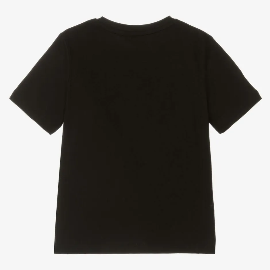 A black cotton T-shirt for boys by BOSS, with a monogram logo print on the front. This casual wardrobe staple is comfortable and soft for every day with a classic crew neck and short sleeves.