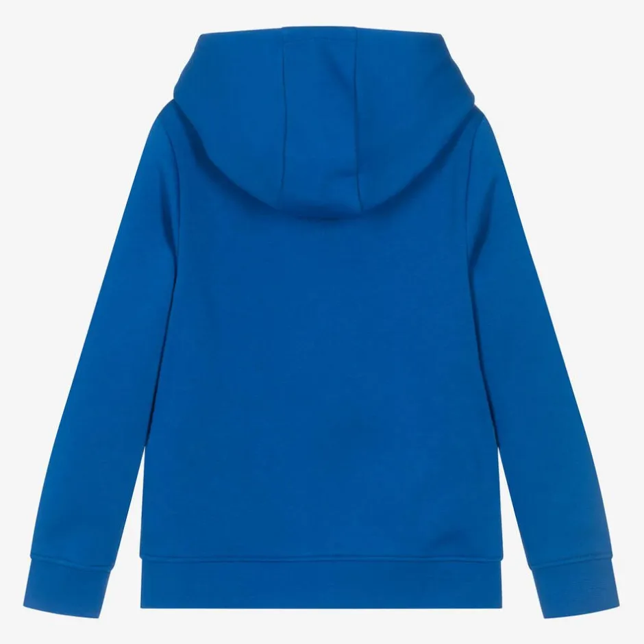 Vibrant blue hooded sweatshirt for boys by BOSS, with a rubberised logo print on the chest for instant designer appeal. Comfortable and casual, this long-sleeved top is made in soft, mid-weight cotton jersey with cosy ribbed trims.