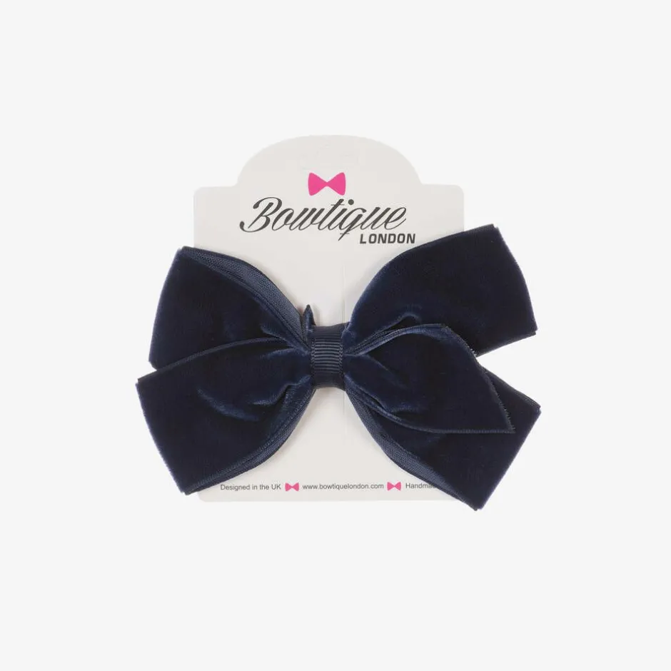 Bowtique London Blue Velvet Bow Hair Clip (11cm) Navy Best
