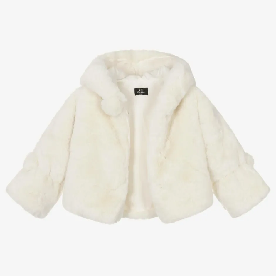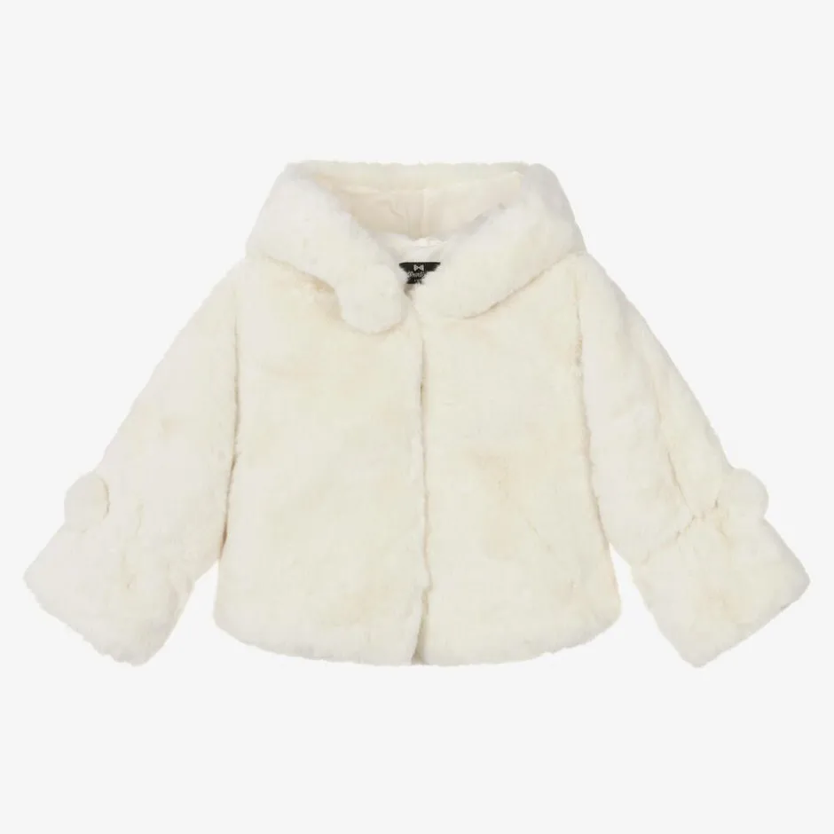 Bowtique London Girls Ivory Faux Fur Hooded Jacket Clearance