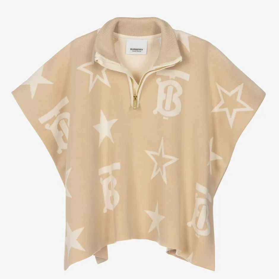 Burberry Baby Girls Beige TB Logo Knitted Cape Best