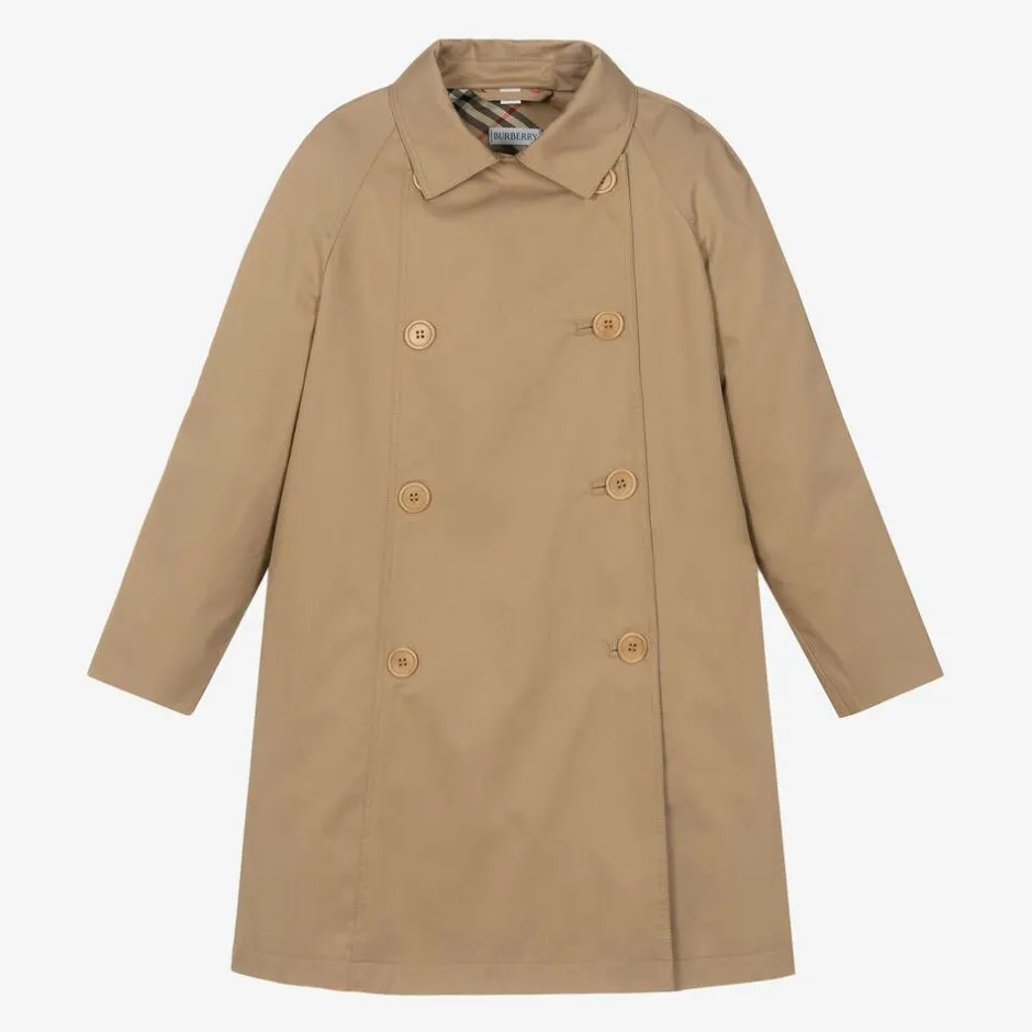 Burberry Girls Beige Cotton Twill Coat New