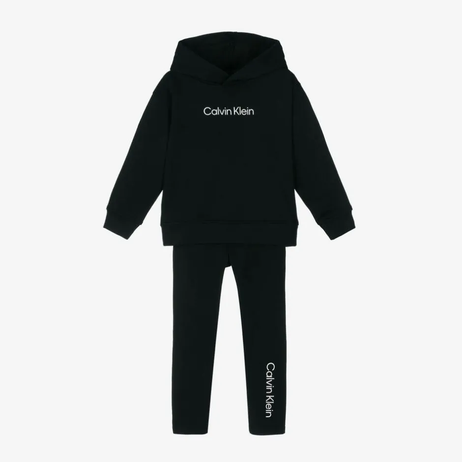 Calvin Klein Girls Black Cotton Hoodie & Leggings Set Hot