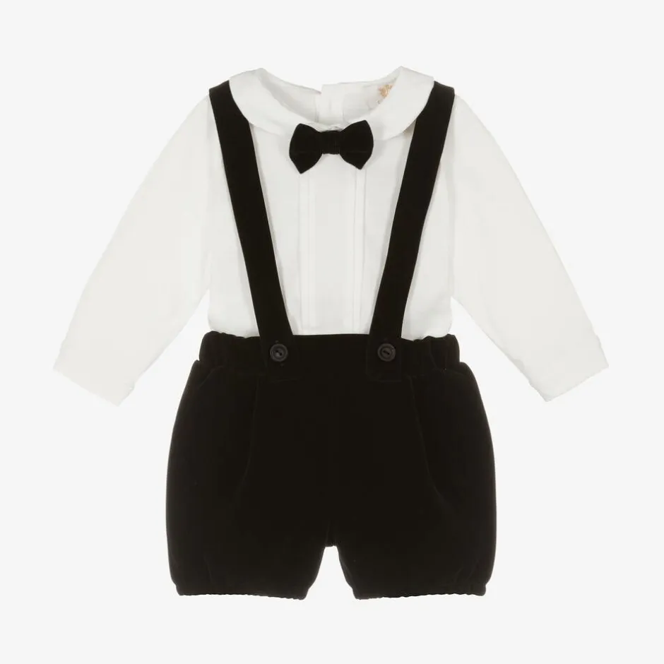 Caramelo Kids Baby Boys Ivory & Black Velvet Shorts Set Clearance