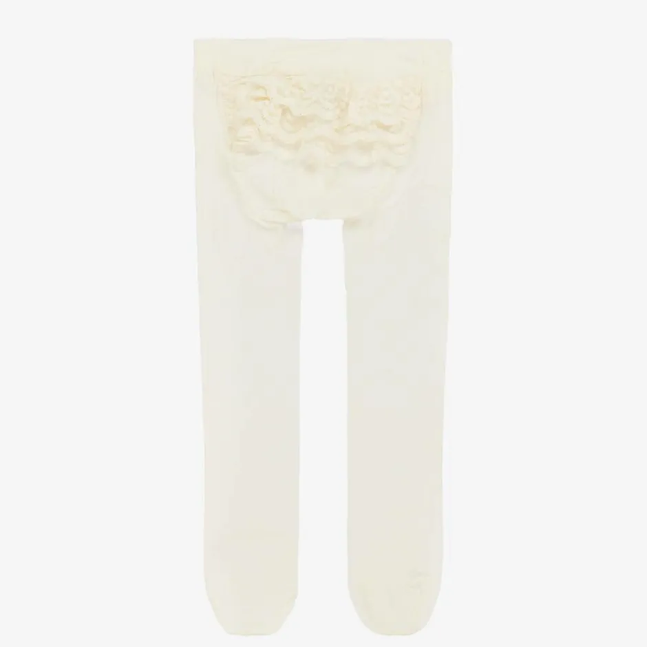 Carlomagno Baby Girls Ivory Lace Frill Tights Online