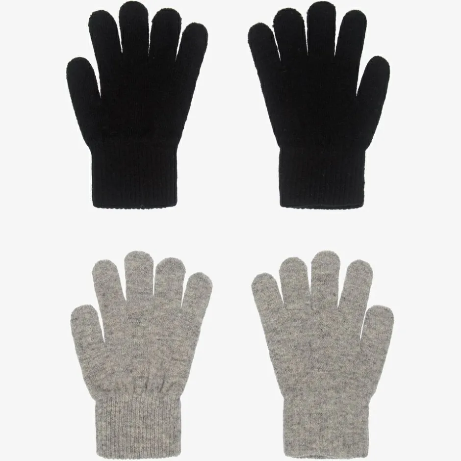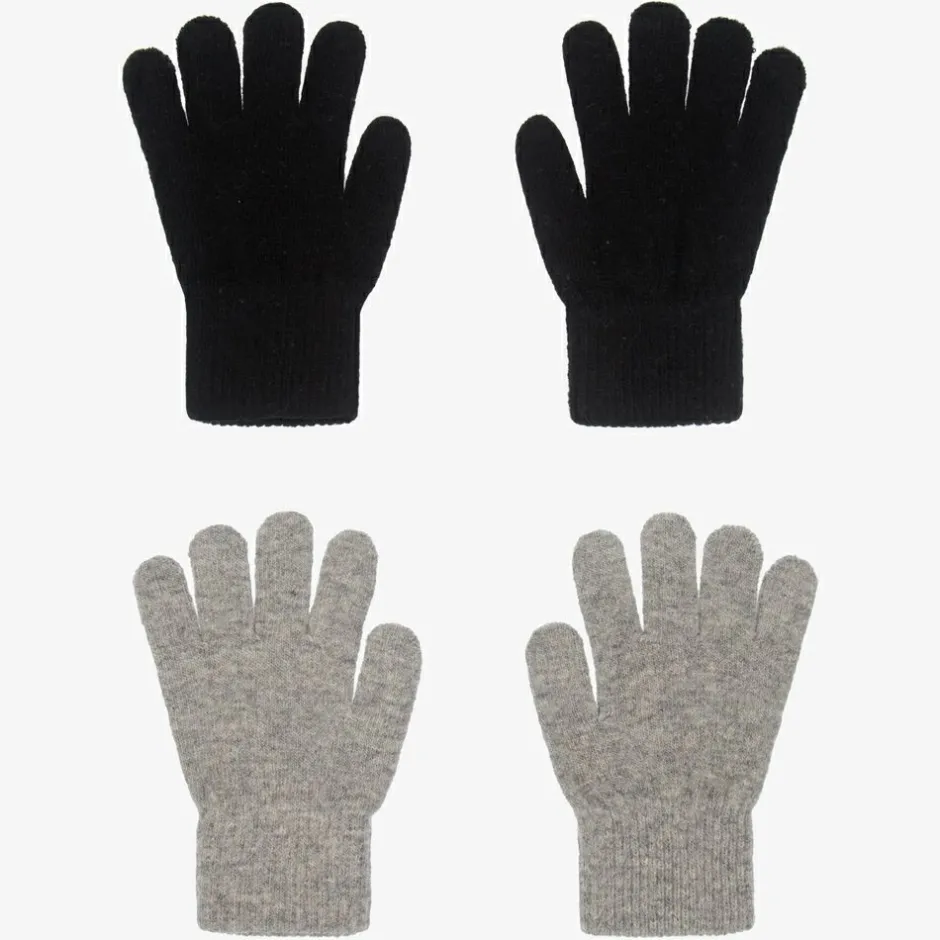 Pack of two, grey and black gloves for boys and girls by Danish brand CeLaVi. Knitted in a super soft wool blend, they will keep little hands warm and cosy.