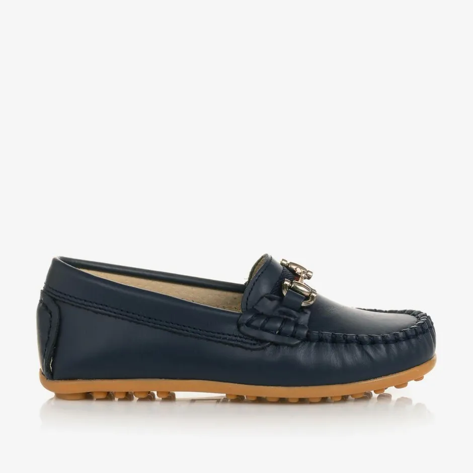Childrens Classics Boys Blue Leather Moccasins Clearance