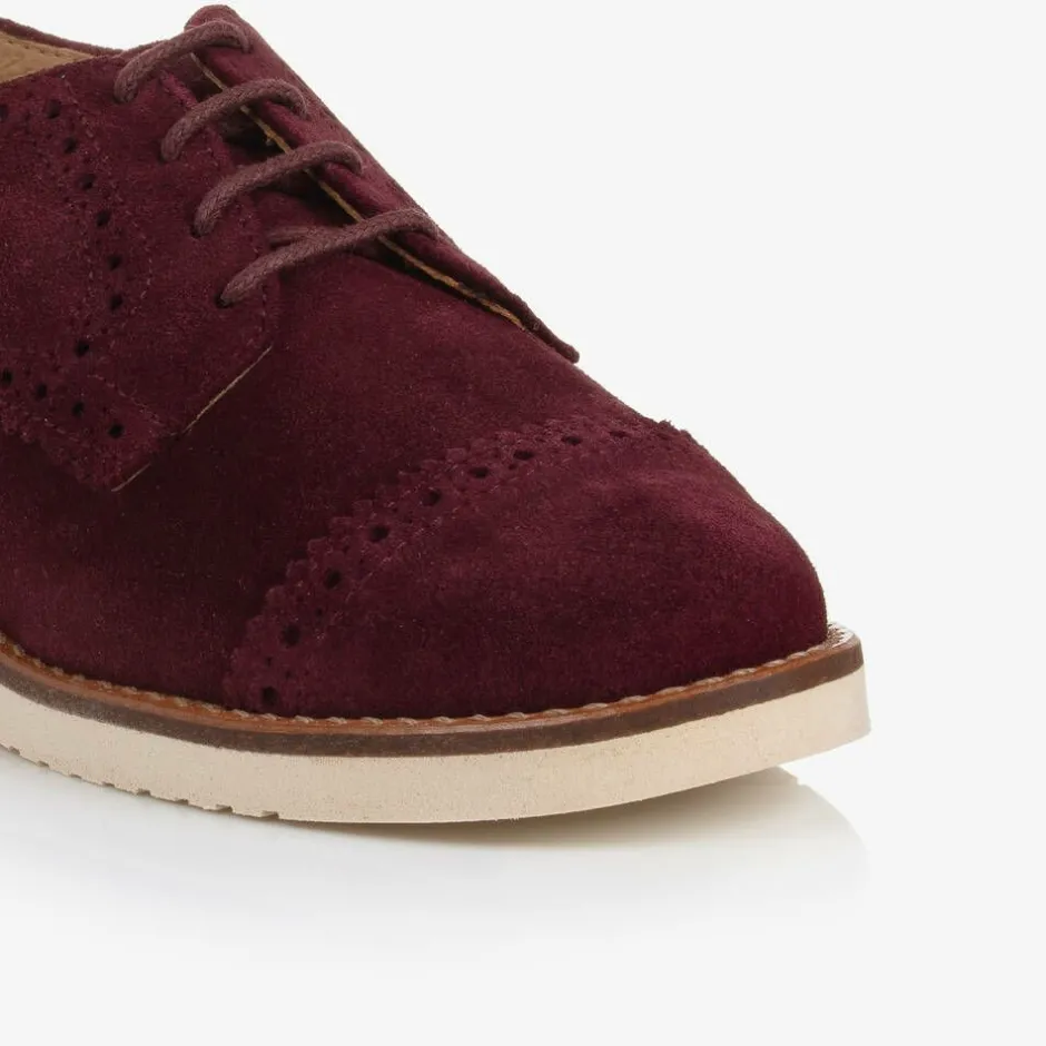 Childrens Classics Boys Burgundy Red Suede Leather Brogue Shoes Hot