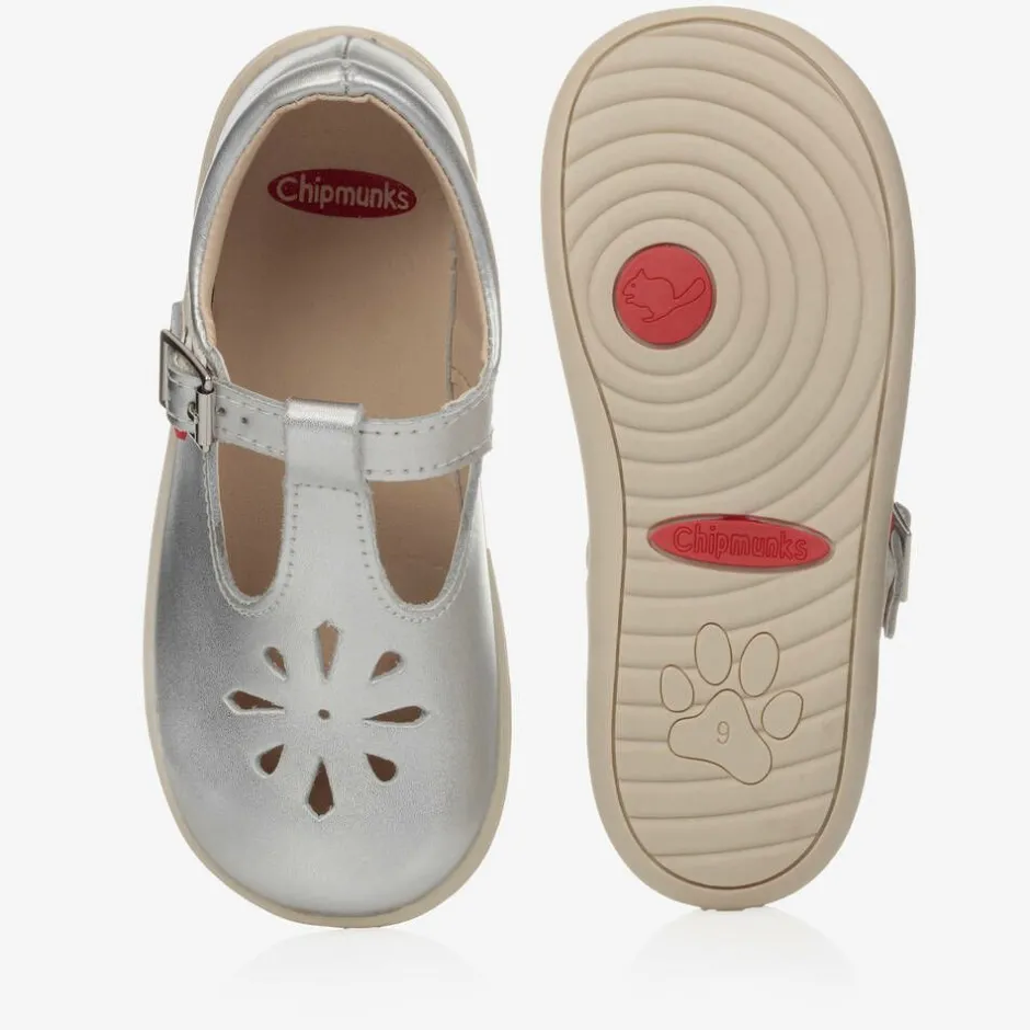 Chipmunks Girls Silver Leather T-Bar Shoes Clearance