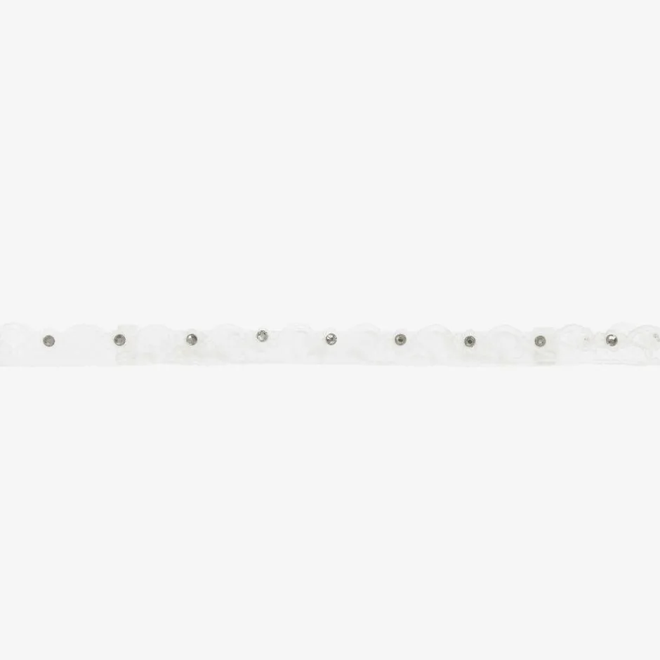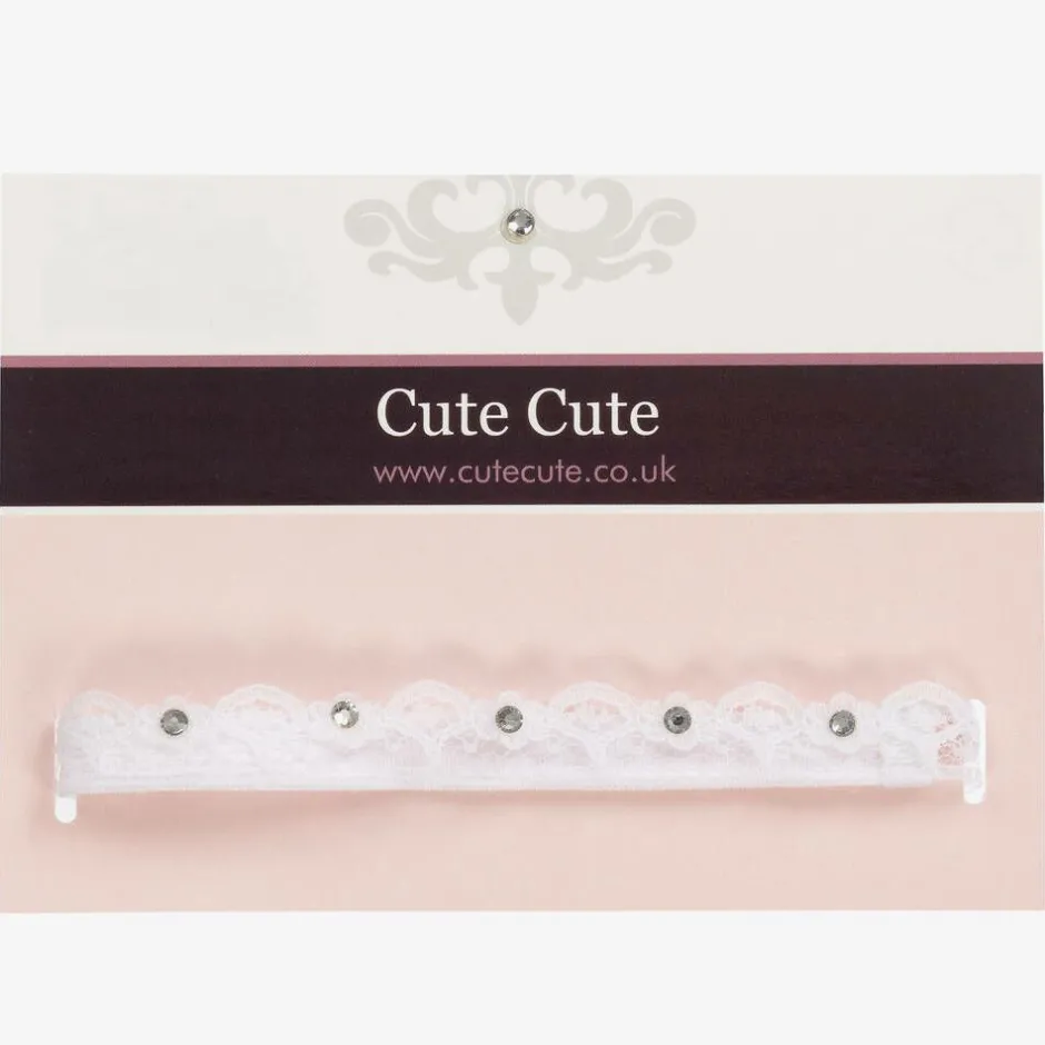 Cute Cute girls ivory lace headband with diamanté. The diamanté studs are attached to a soft, very stretchy ivory lace elastic band.
