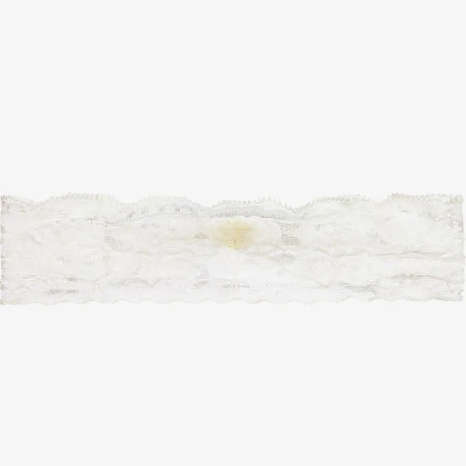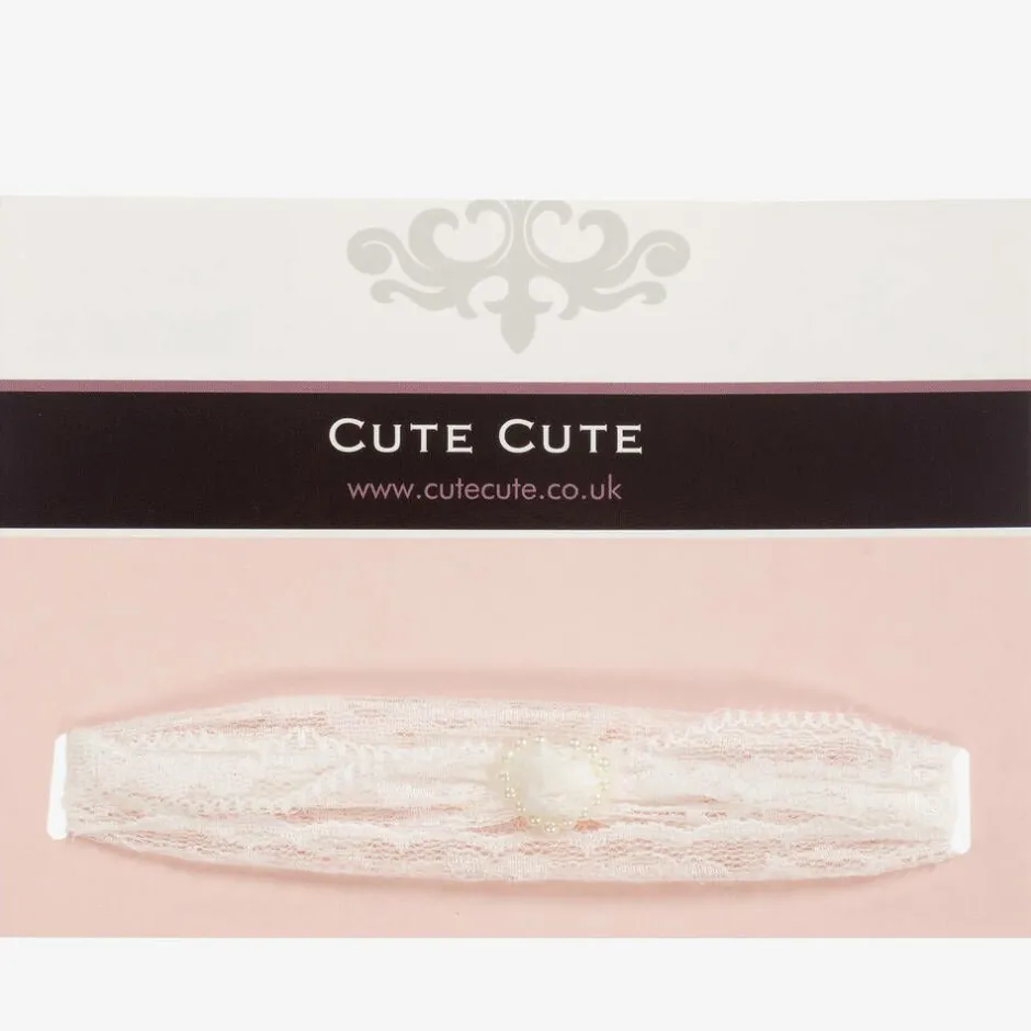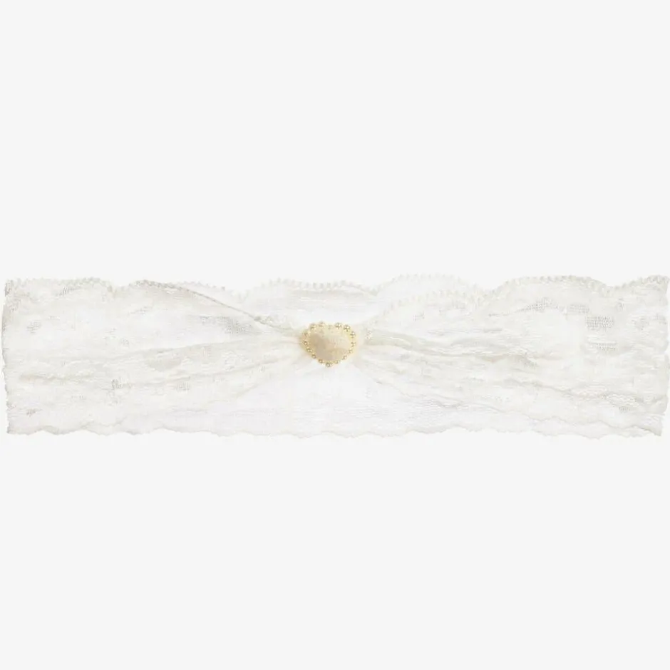 Cute Cute girls delicate soft and stretchy ivory lace wide headband, with a pearl heart motif in the centre.