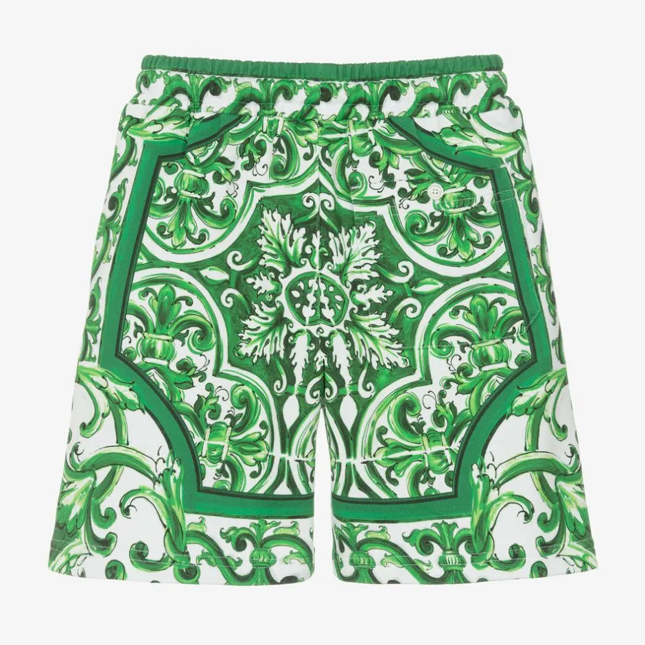Dolce amp; Gabbana Boys Green Majolica Cotton Shorts Hot