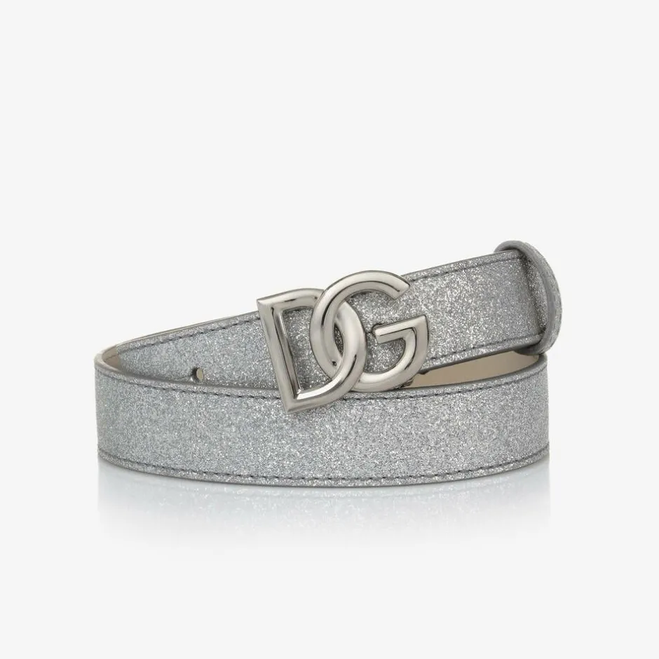 Dolce amp; Gabbana Girls Silver Glitter DG Buckle Belt Sale