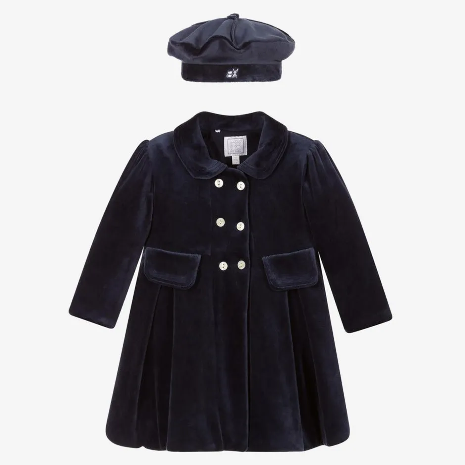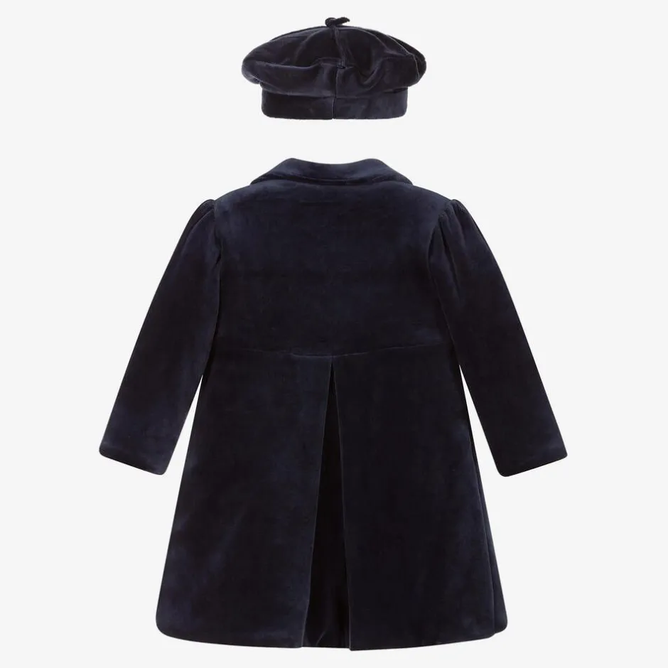Emile et Rose Baby Girls Blue Velour Coat & Hat Set Discount