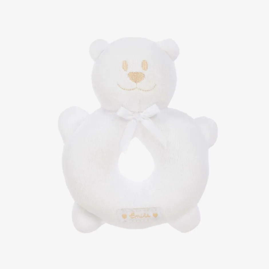 Emile et Rose White Plush Bear Rattle Toy (14cm) Discount